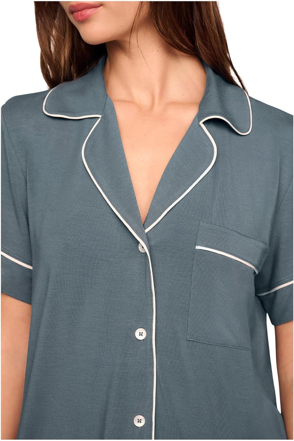 Eberjey Gisele Relaxed Women’s Short PJ Set(Stone Blue/Ivory)