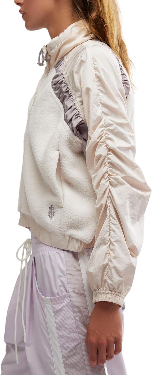 Free People womens Amelia Zip Up Fleece(Bleached Clay/Oyster)