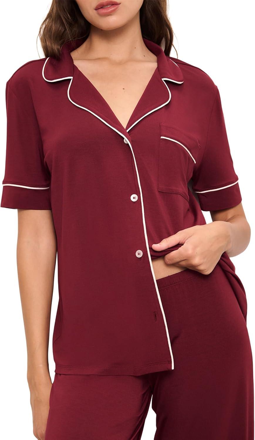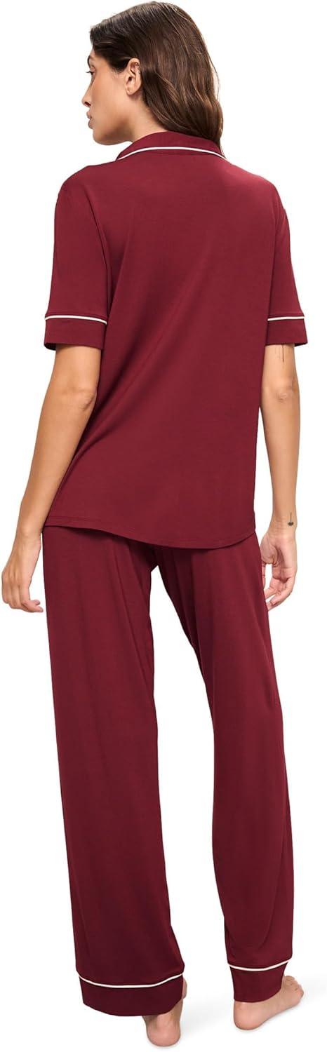 Eberjey Gisele Short Sleeve Pant PJ Set(Cabernet/Ivory)