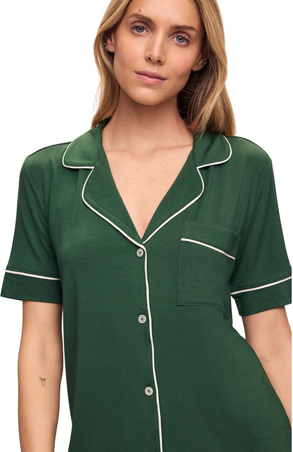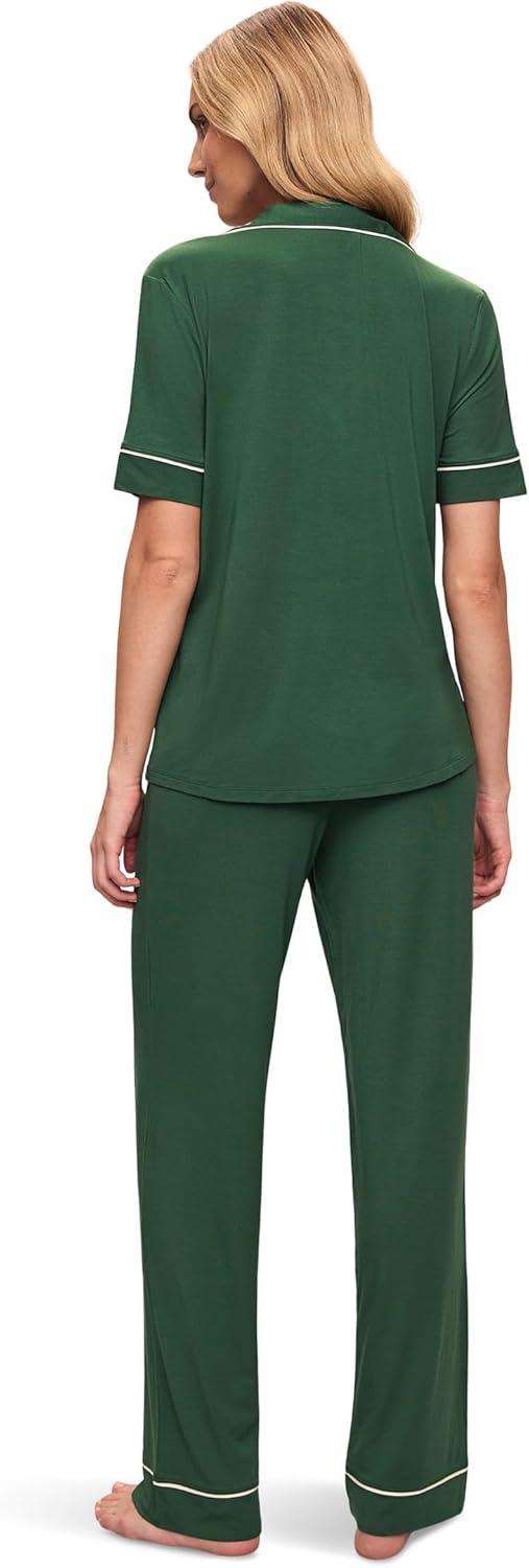 Eberjey Gisele Short Sleeve Pant PJ Set(Forest Green/Ivory)