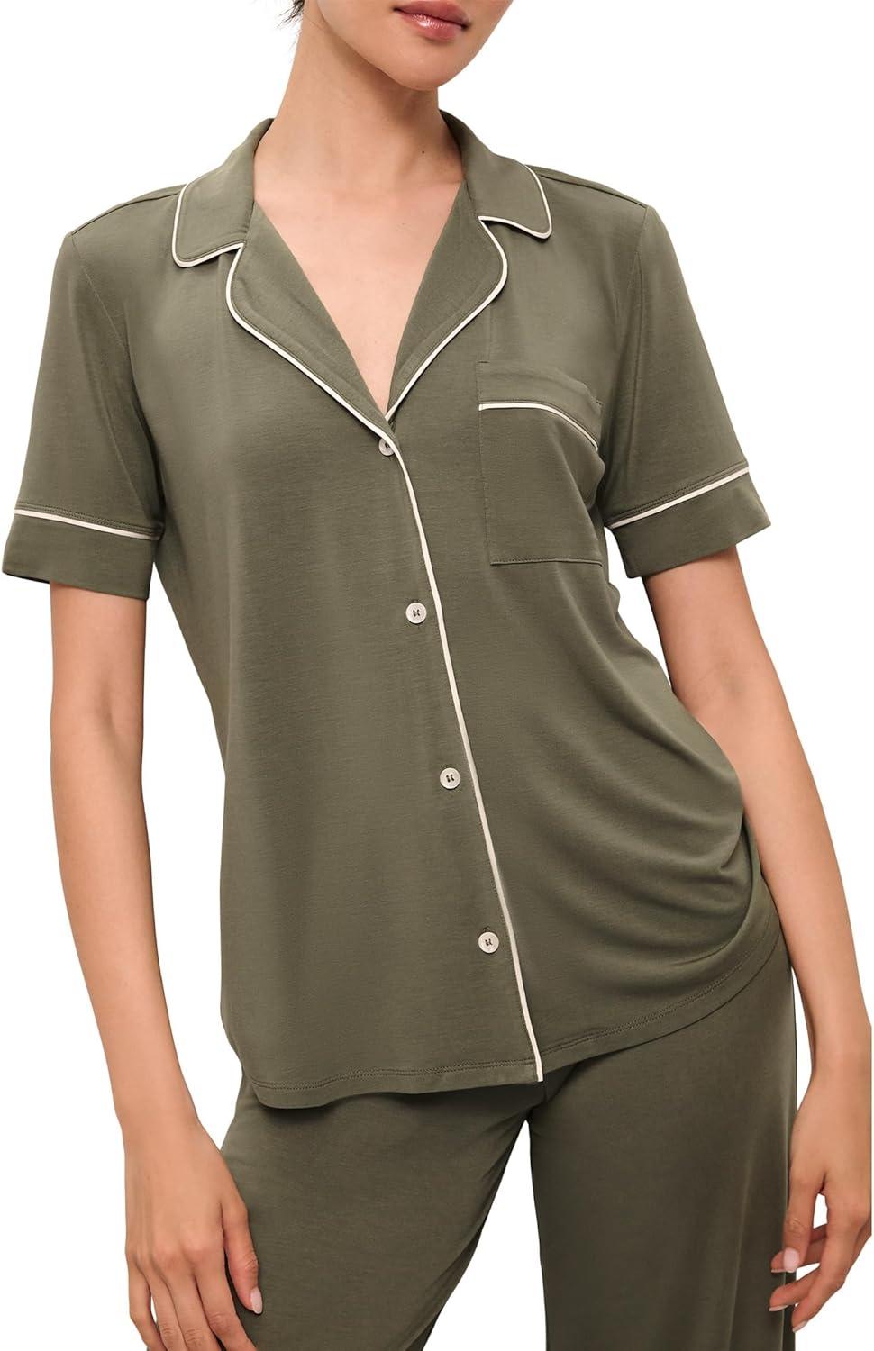 Eberjey Gisele Short Sleeve Pant PJ Set(Moss/Ivory)