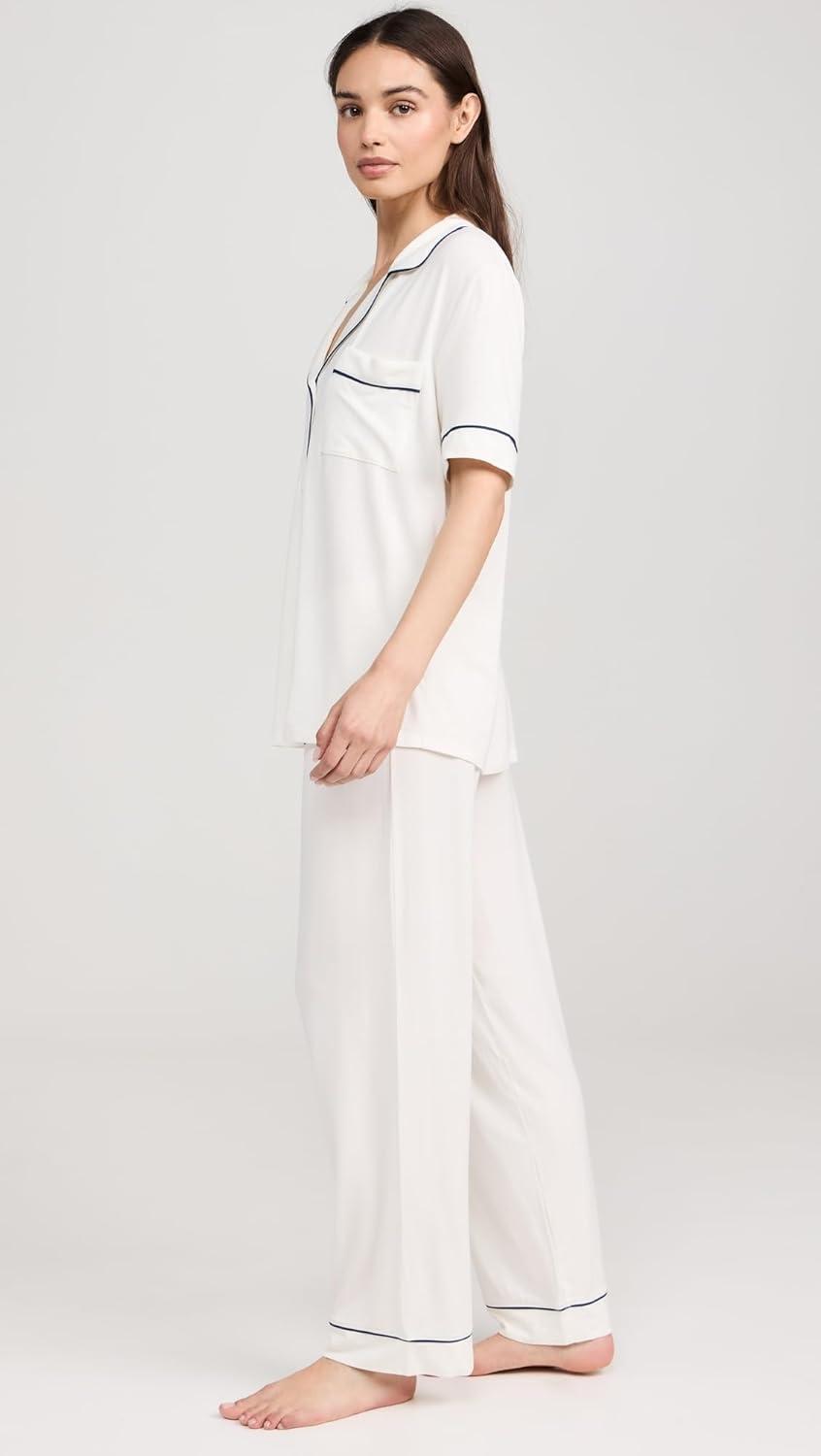 Eberjey Gisele Short Sleeve Pant PJ Set(Pure Ivory/Navy)