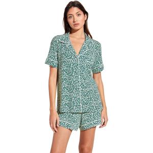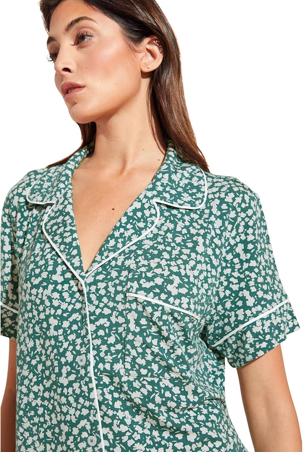 Eberjey Gisele Printed The Relaxed Short PJ Set for Women – Short Sleeves, All Over Polka Dots and Classic Folded Collar(Abstract Floral Agave)