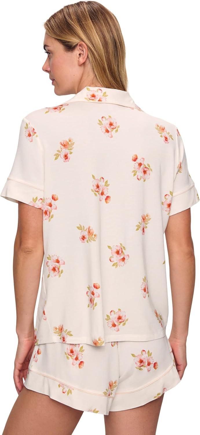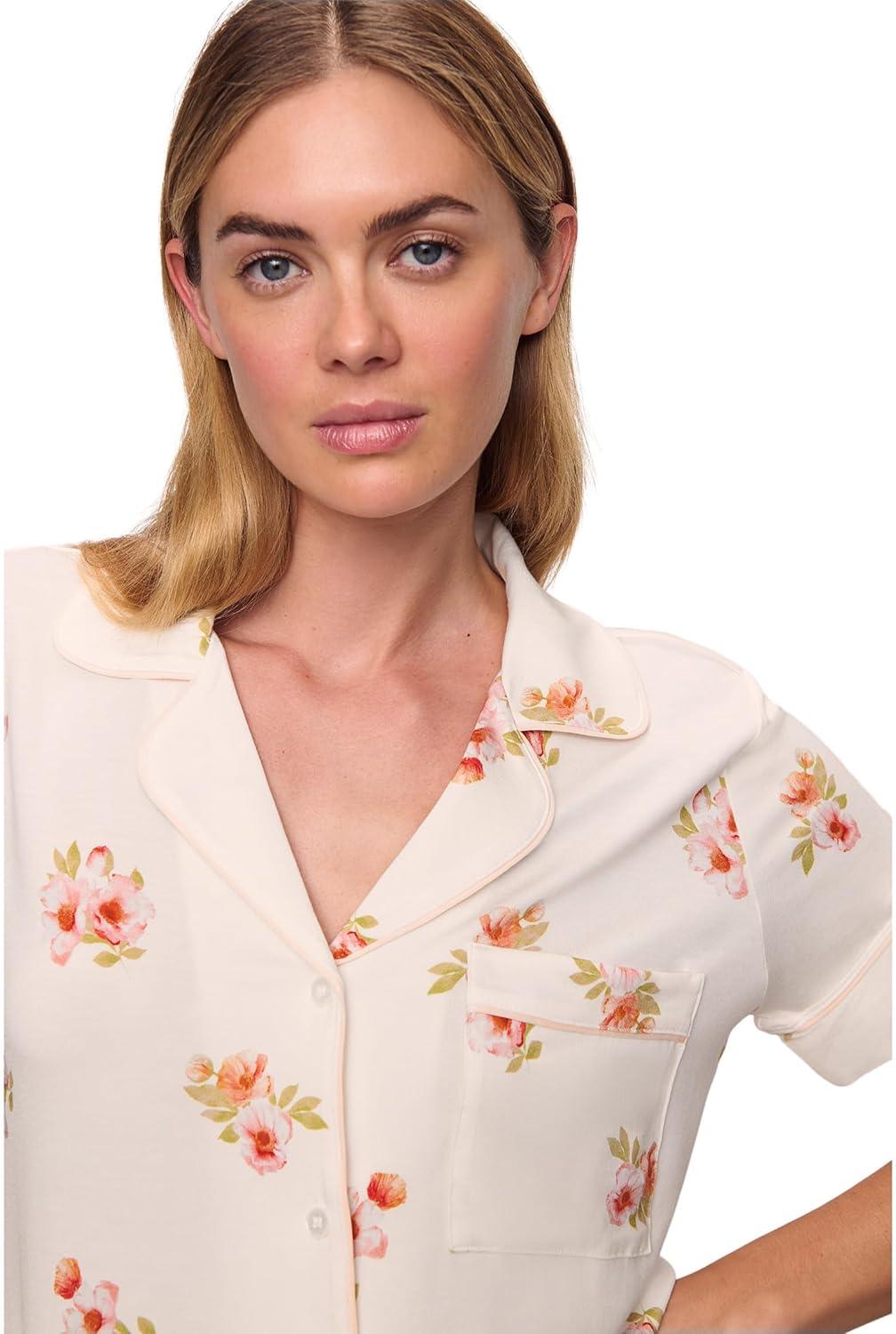 Eberjey Gisele Printed The Relaxed Short PJ Set for Women – Short Sleeves, All Over Polka Dots and Classic Folded Collar(Floral Bloom Ivory/Vanilla Cream)