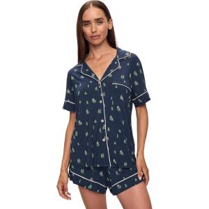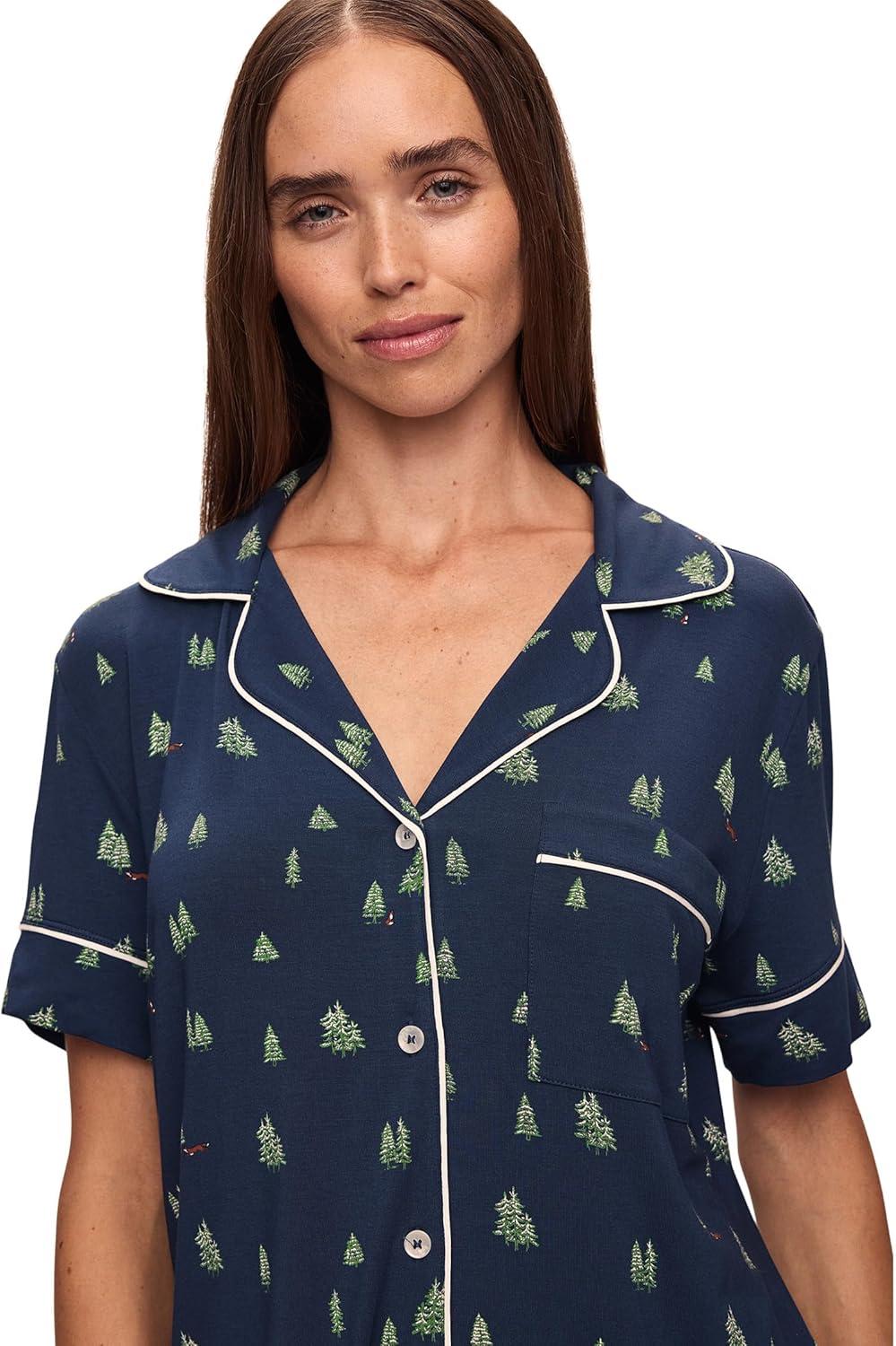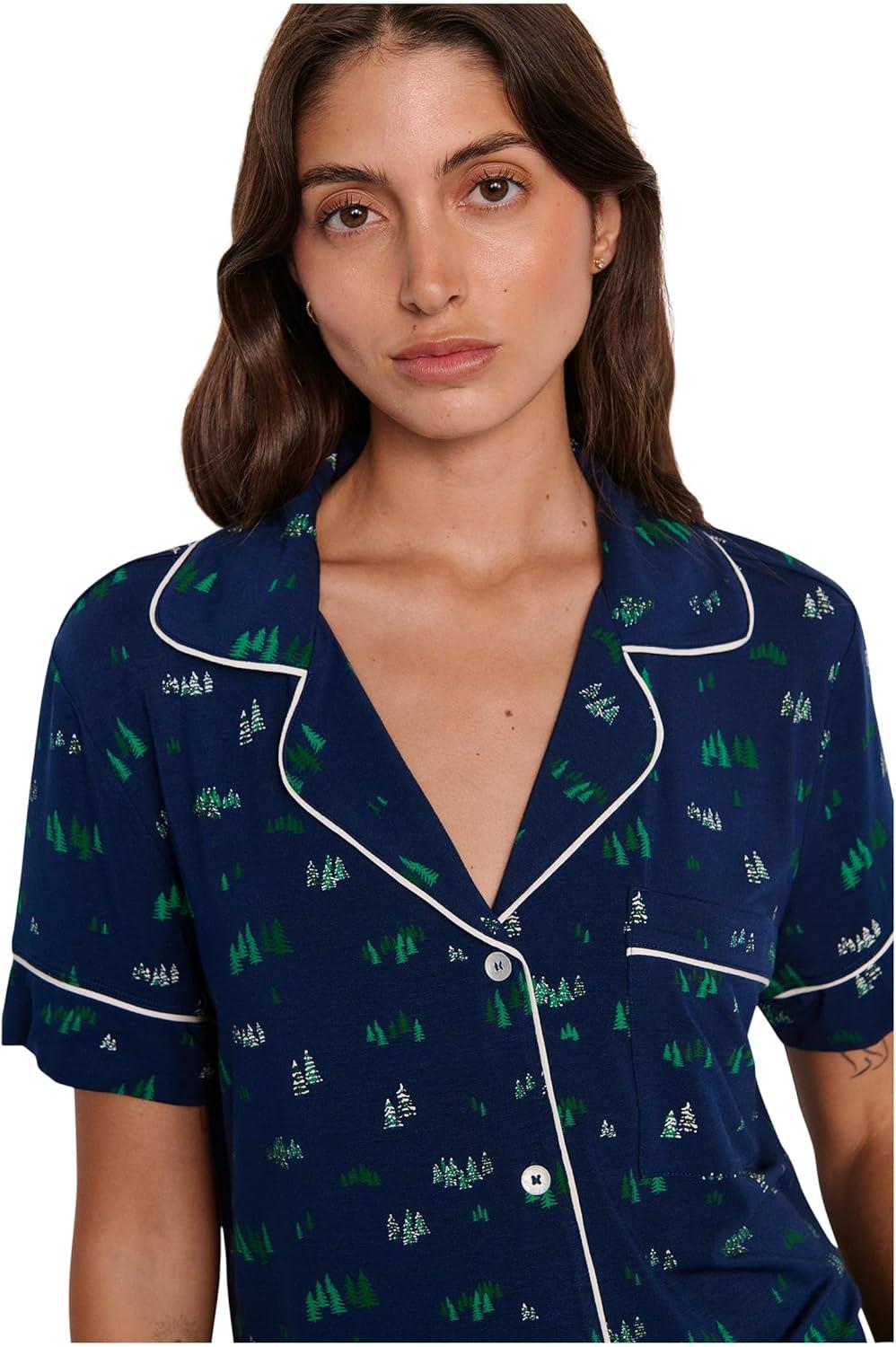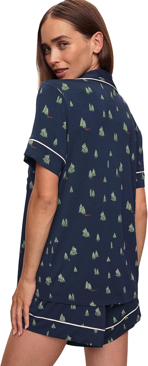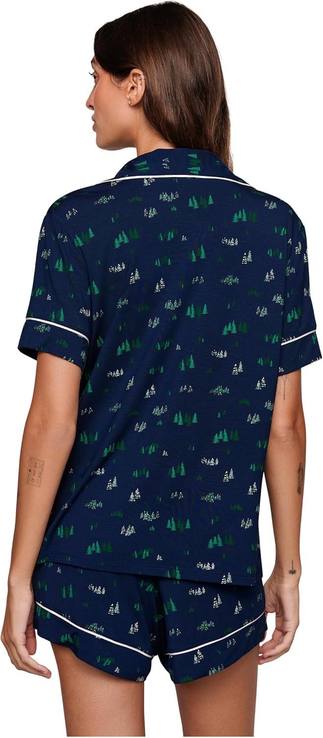 Eberjey Gisele Printed The Relaxed Short PJ Set for Women – Short Sleeves, All Over Polka Dots and Classic Folded Collar(Woodland Pine Navy/Ivory)