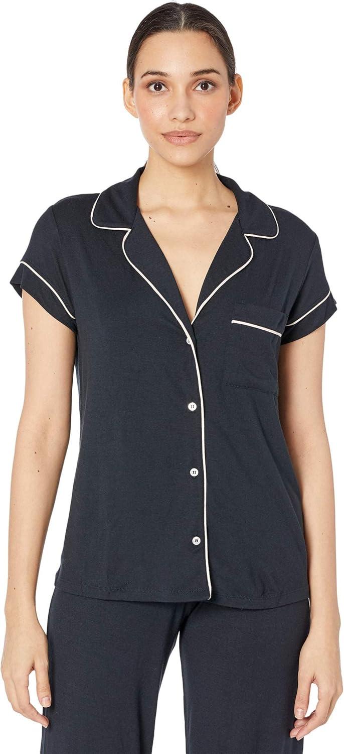 Eberjey Gisele Short Sleeve and Cropped Pant PJ Set(Black/Sorbet Pink)