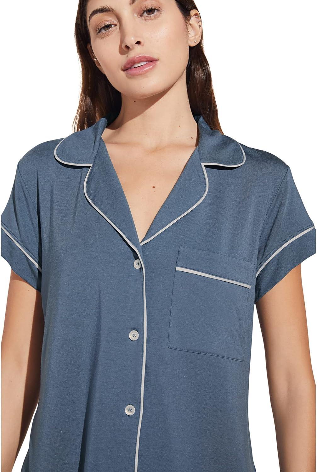 Eberjey Gisele Printed The Relaxed Short PJ Set for Women – Short Sleeves, All Over Polka Dots and Classic Folded Collar(Gray Dawn/Navy)