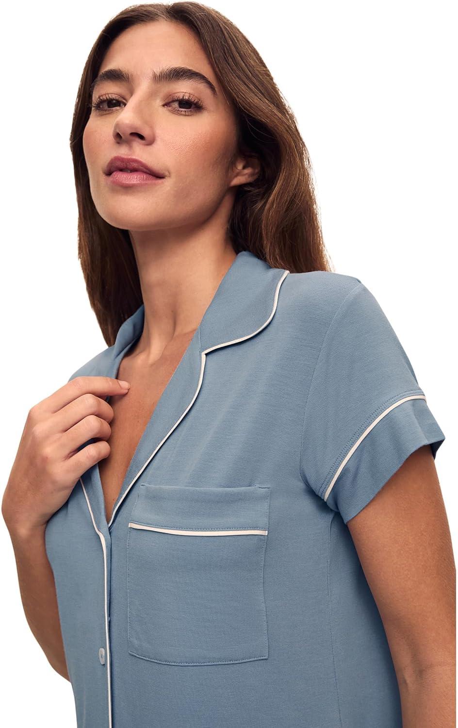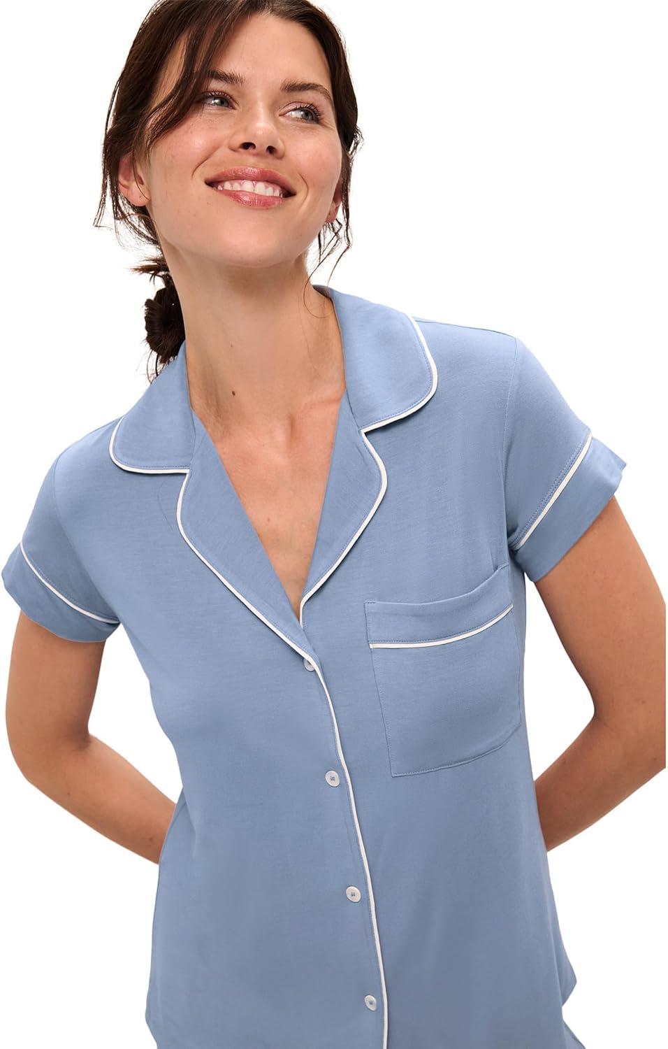 Eberjey Gisele Short Sleeve and Cropped Pant PJ Set(Faded Denim/Ivory)
