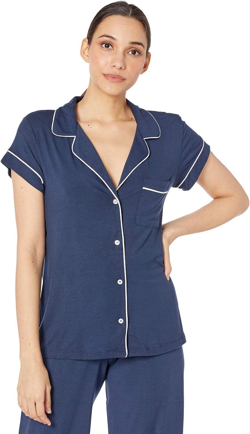 Eberjey Gisele Short Sleeve and Cropped Pant PJ Set(Navy/Ivory)