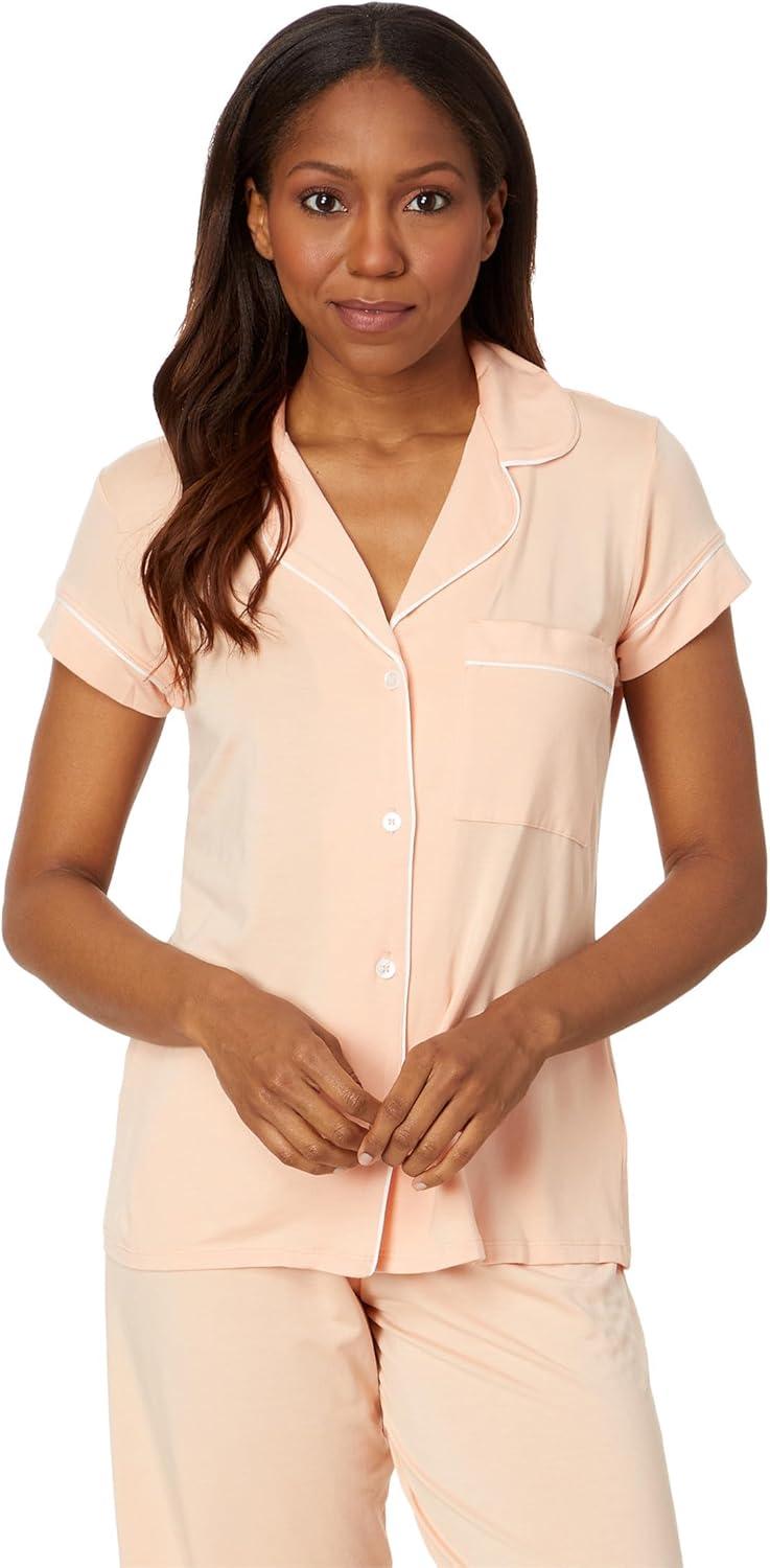 Eberjey Gisele Short Sleeve and Cropped Pant PJ Set(Peach Parfait/Ivory)