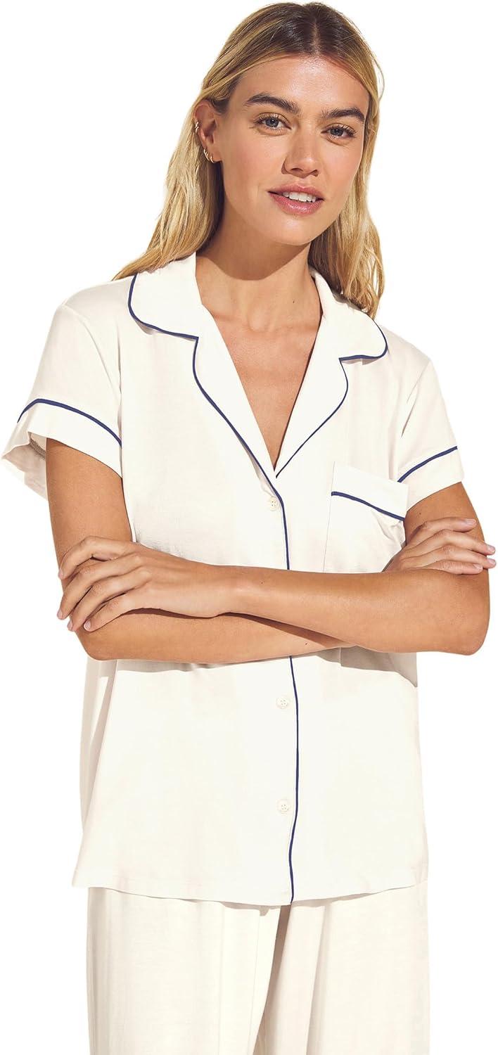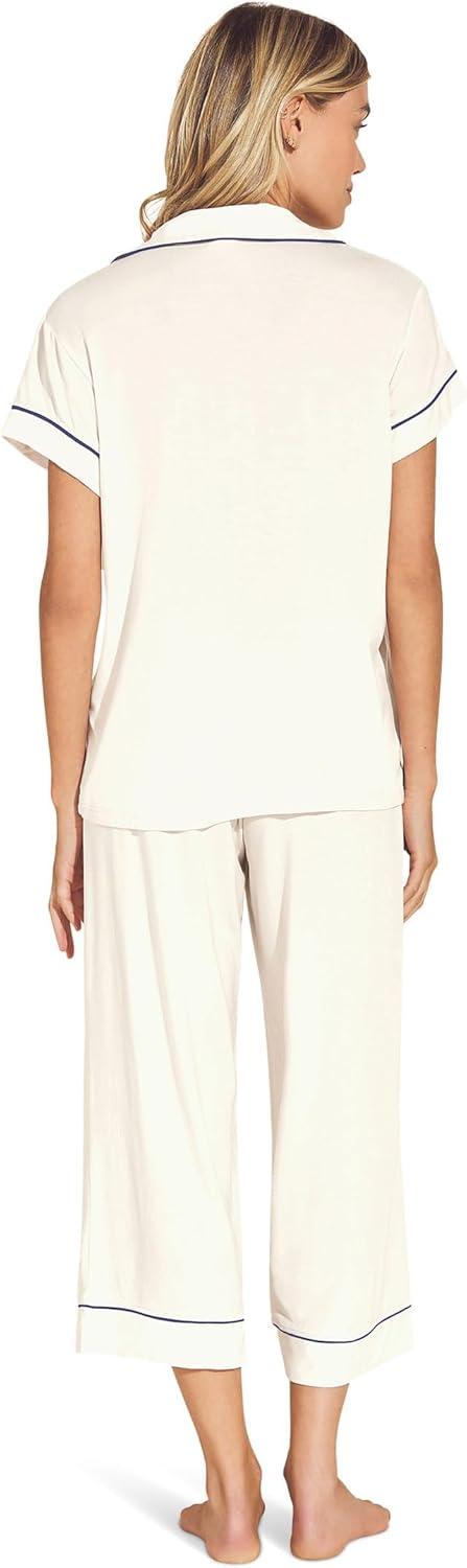 Eberjey Gisele Short Sleeve and Cropped Pant PJ Set(Pure Ivory/Navy)