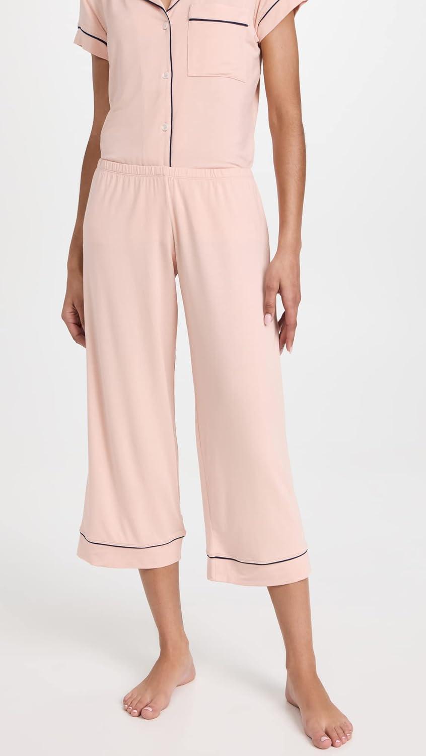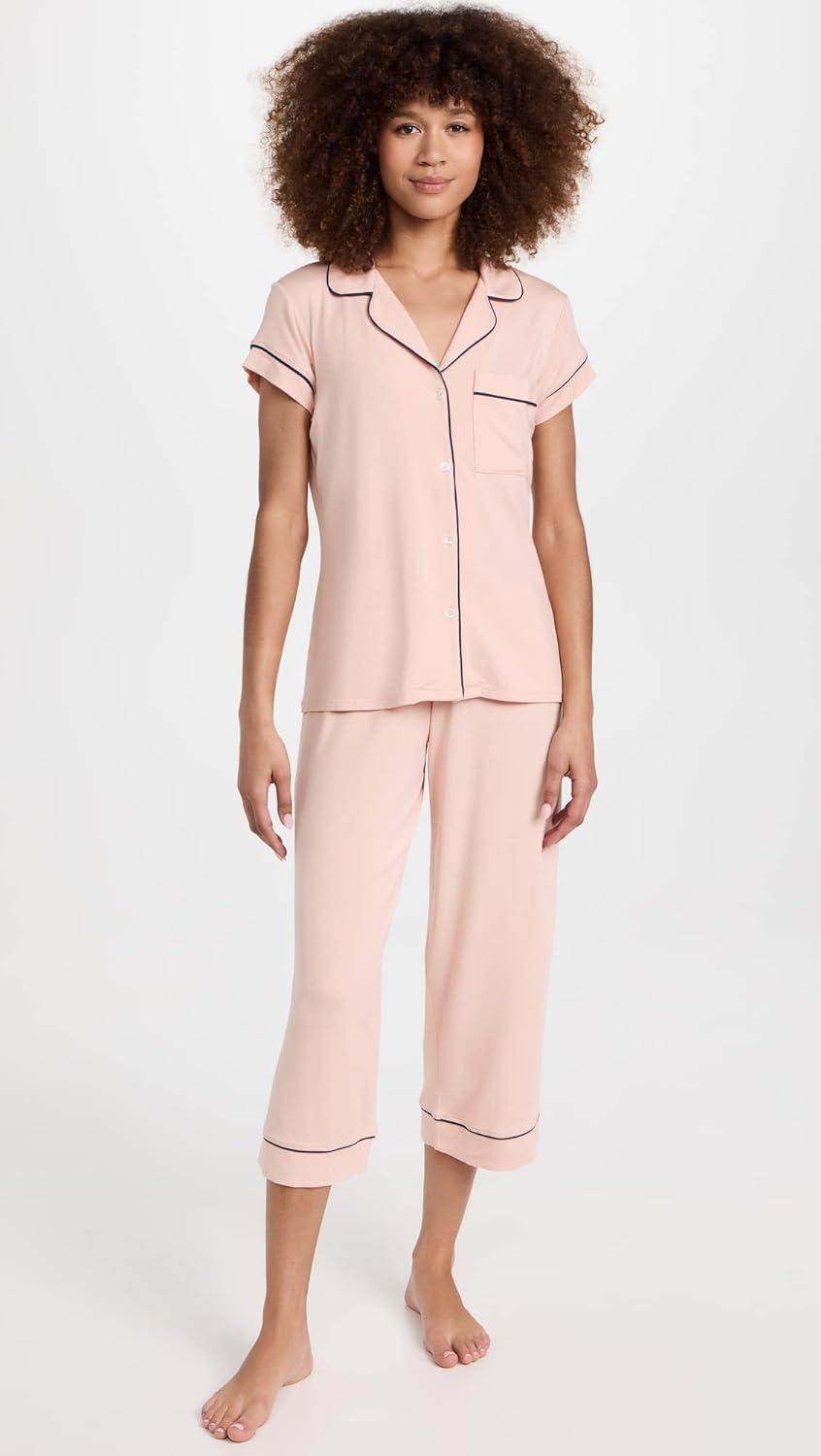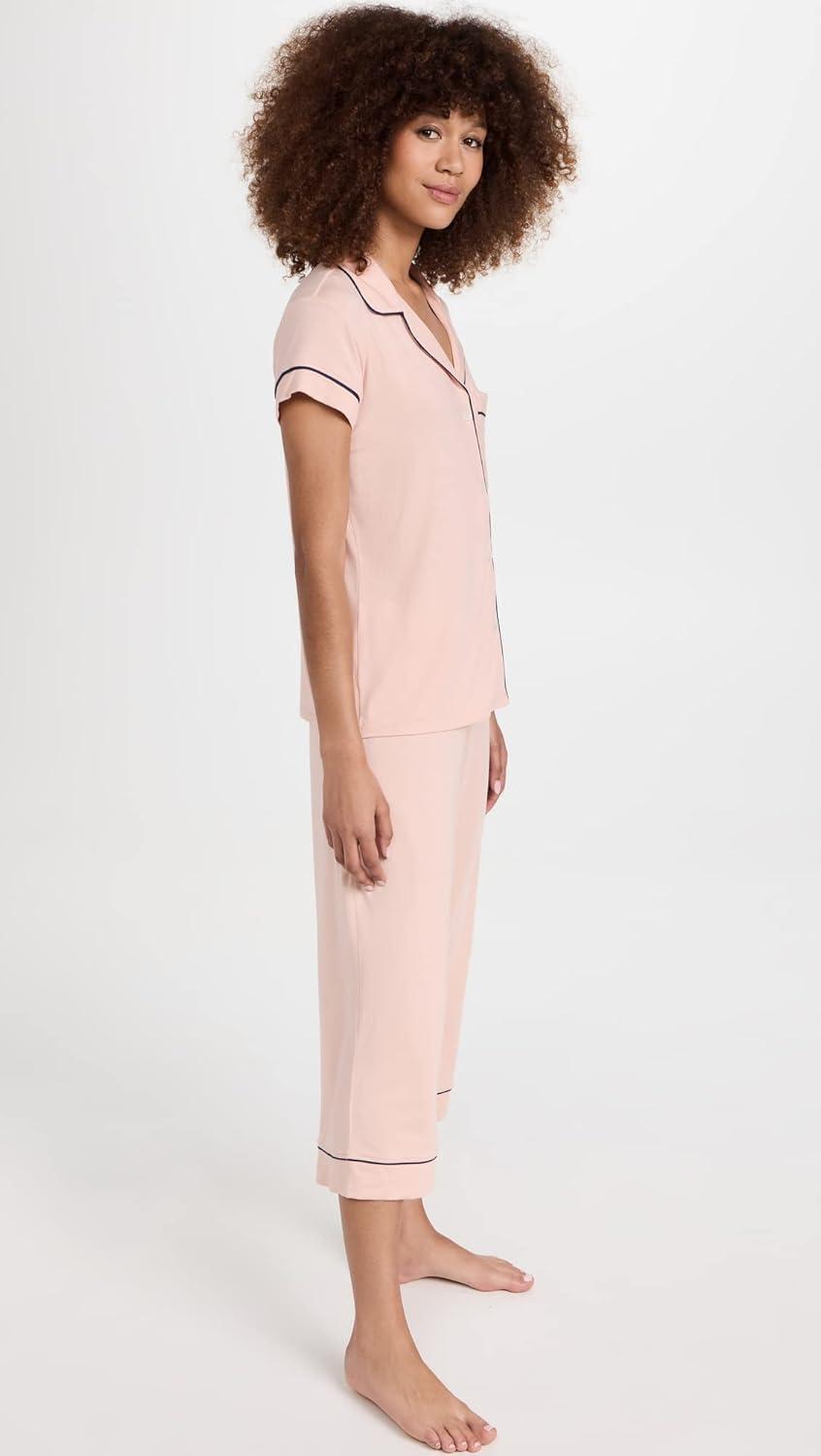 Eberjey Gisele Short Sleeve and Cropped Pant PJ Set(Rose Cloud/Navy)