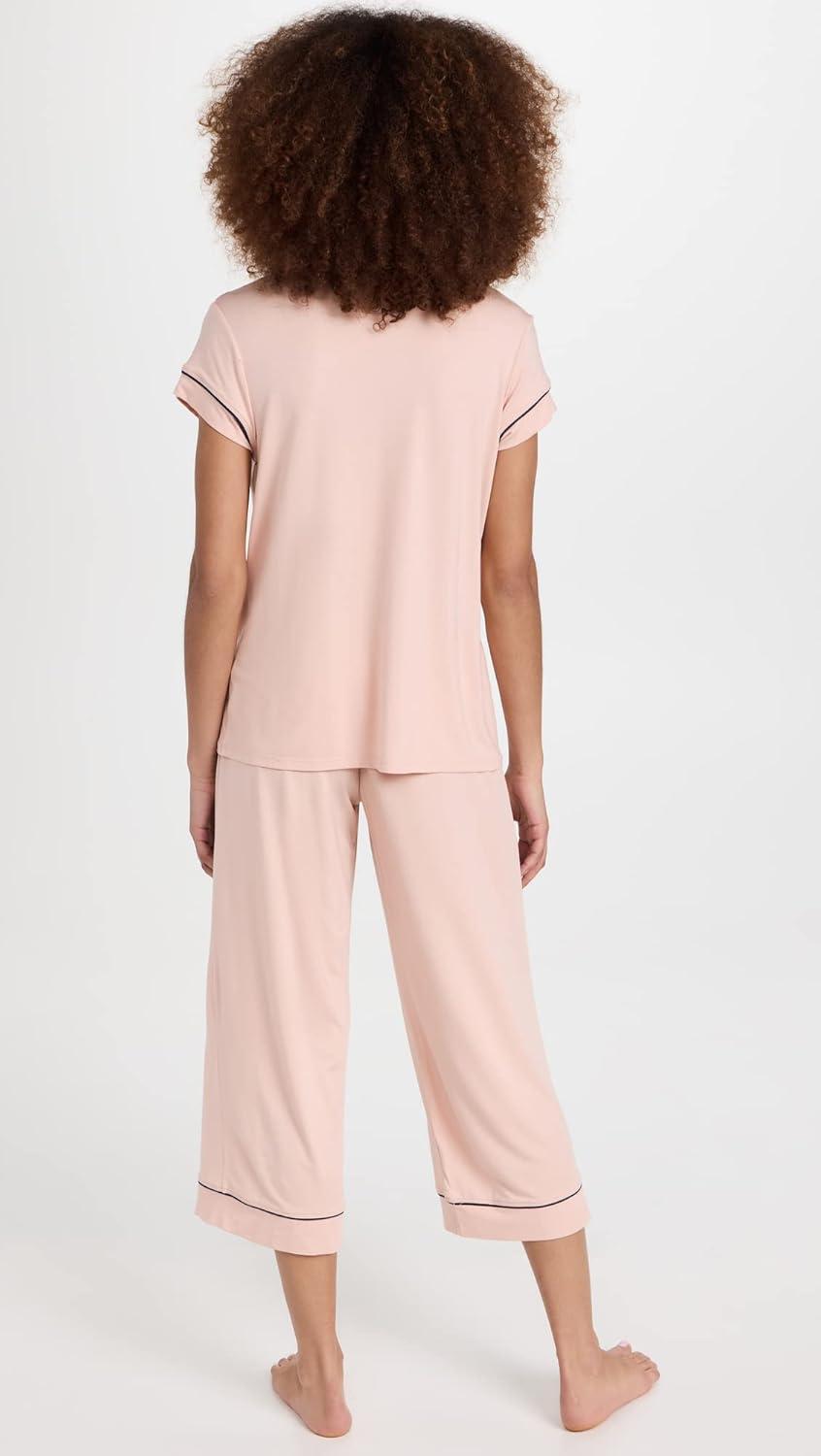 Eberjey Gisele Short Sleeve and Cropped Pant PJ Set(Graphite/Sorbet Pink)