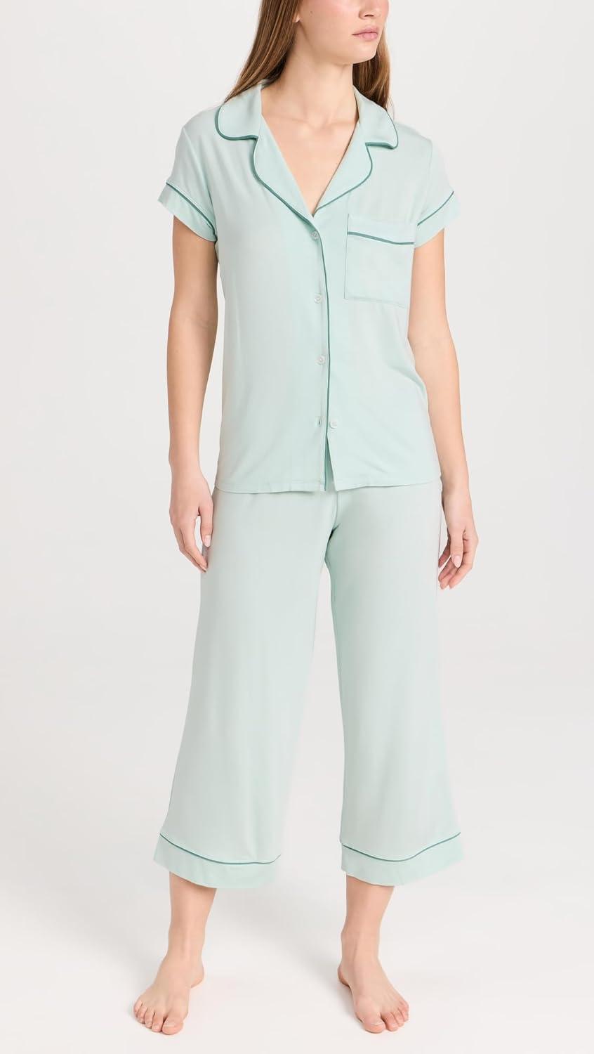 Eberjey Gisele Short Sleeve and Cropped Pant PJ Set(Surf Spray/ Agave)