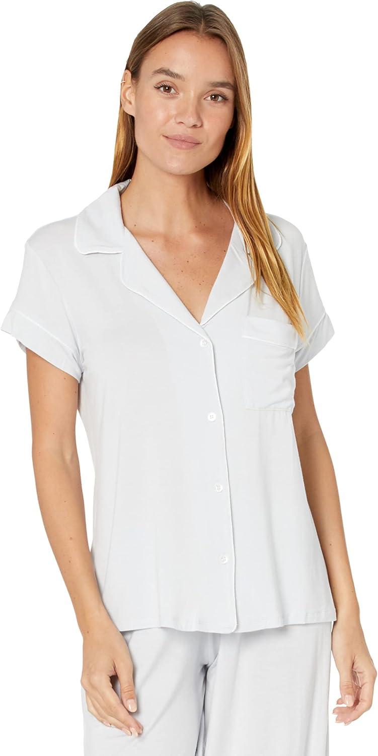 Eberjey Gisele Short Sleeve and Cropped Pant PJ Set(Ice Blue/Ivory)