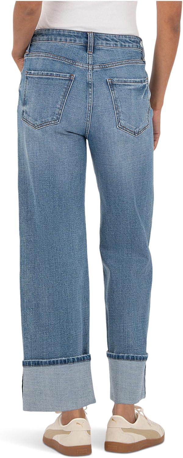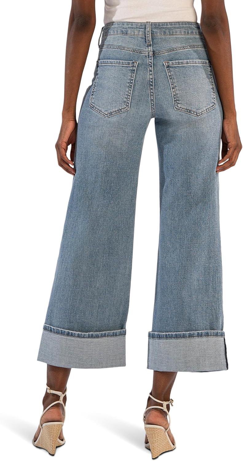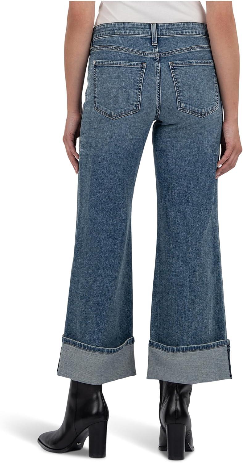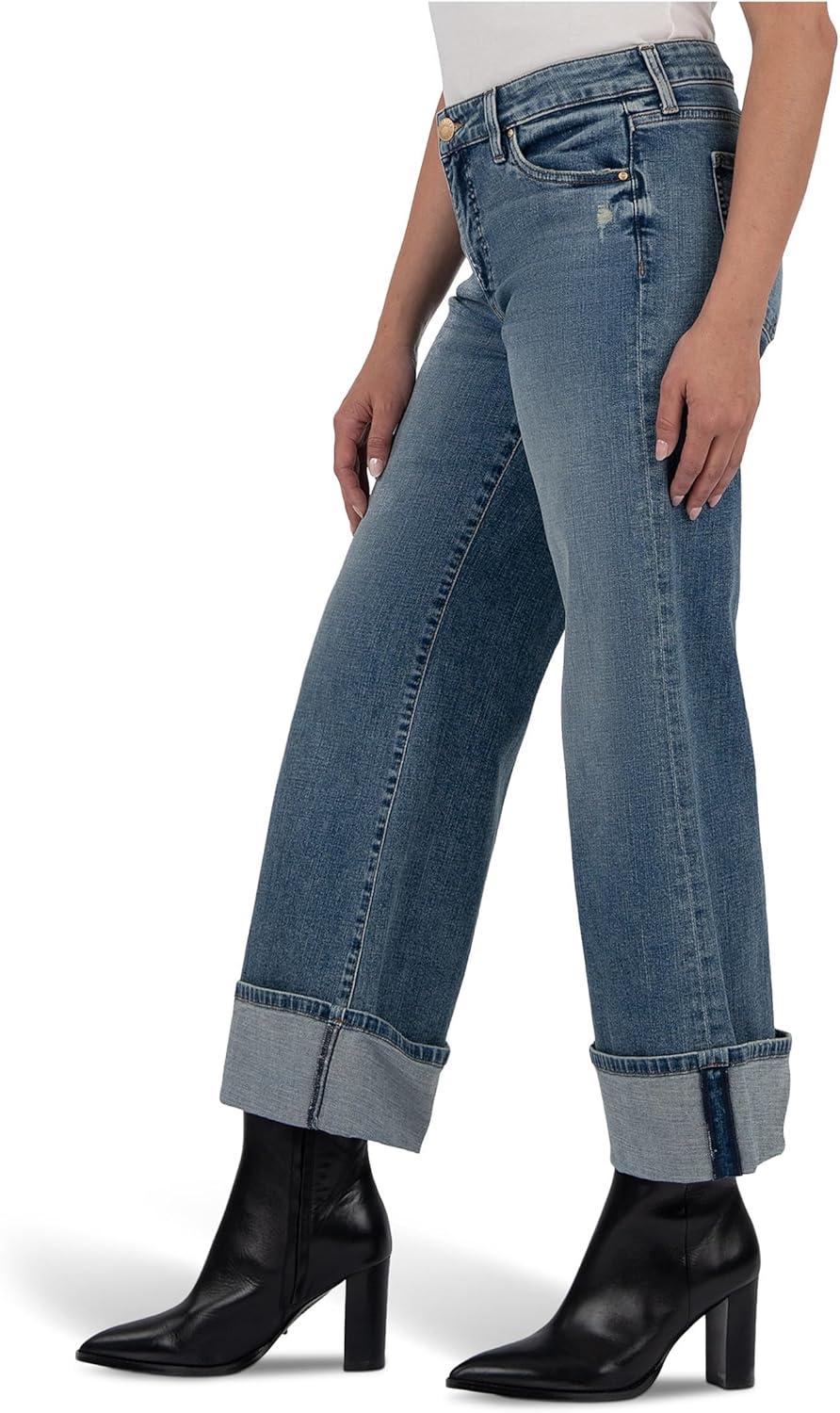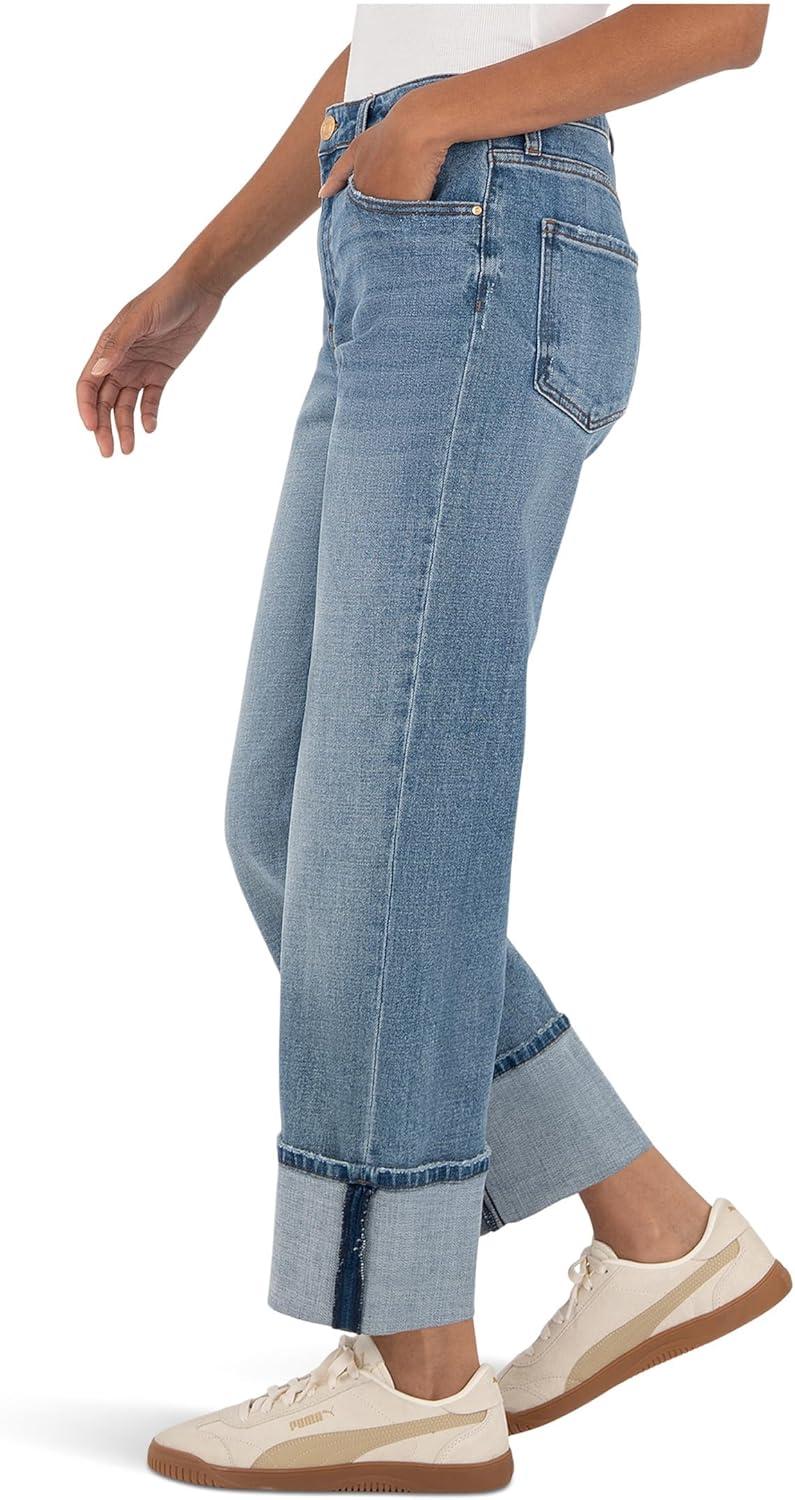 KUT from the Kloth Women’s Meg High Rise Fab Ab Wide Legs Roll Up Regular Hem(Charming W/Medium Base Wash)