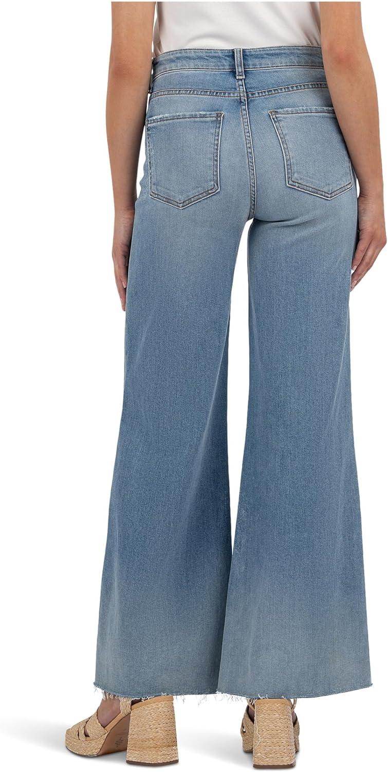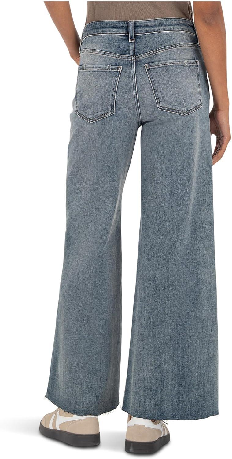 KUT from the Kloth Women’s Ryan High Rise Fab Ab Super Wide Leg Raw Hem(Adaptability With Medium Base Wash)
