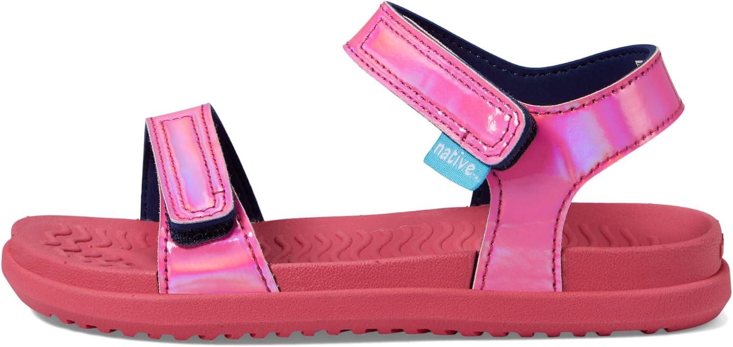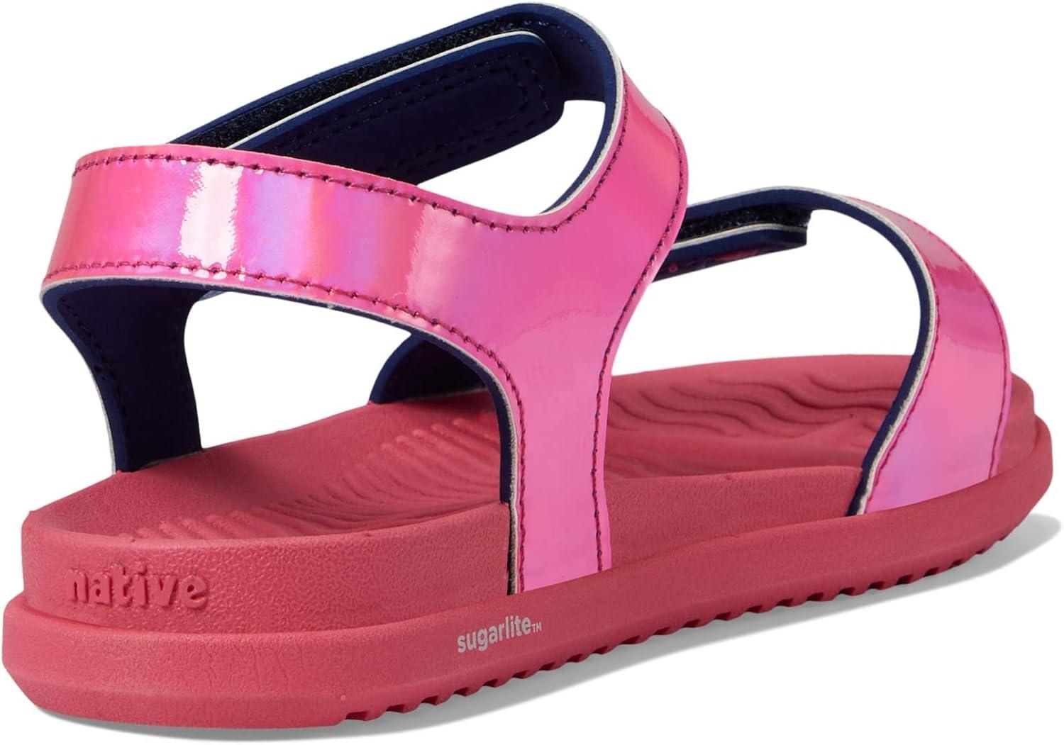 Native Shoes Kids Charley Sugarlite Hologram Flat Sandals for Little Kid – Hook-Loop Closure with EVA Footbed, and Open Toe Design(Dazzle Hologram/Dazzle Pink/Dazzle Pink)