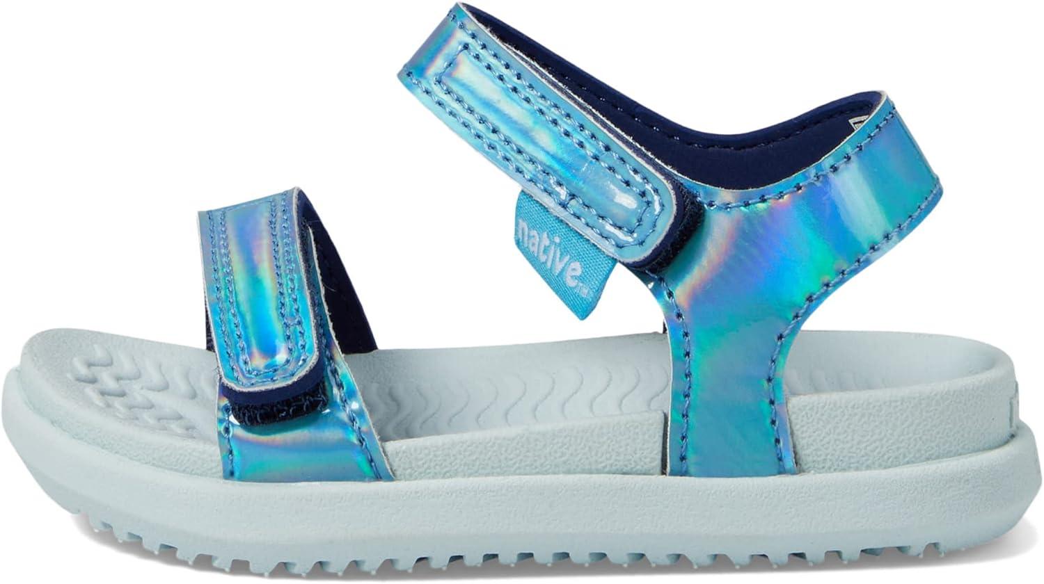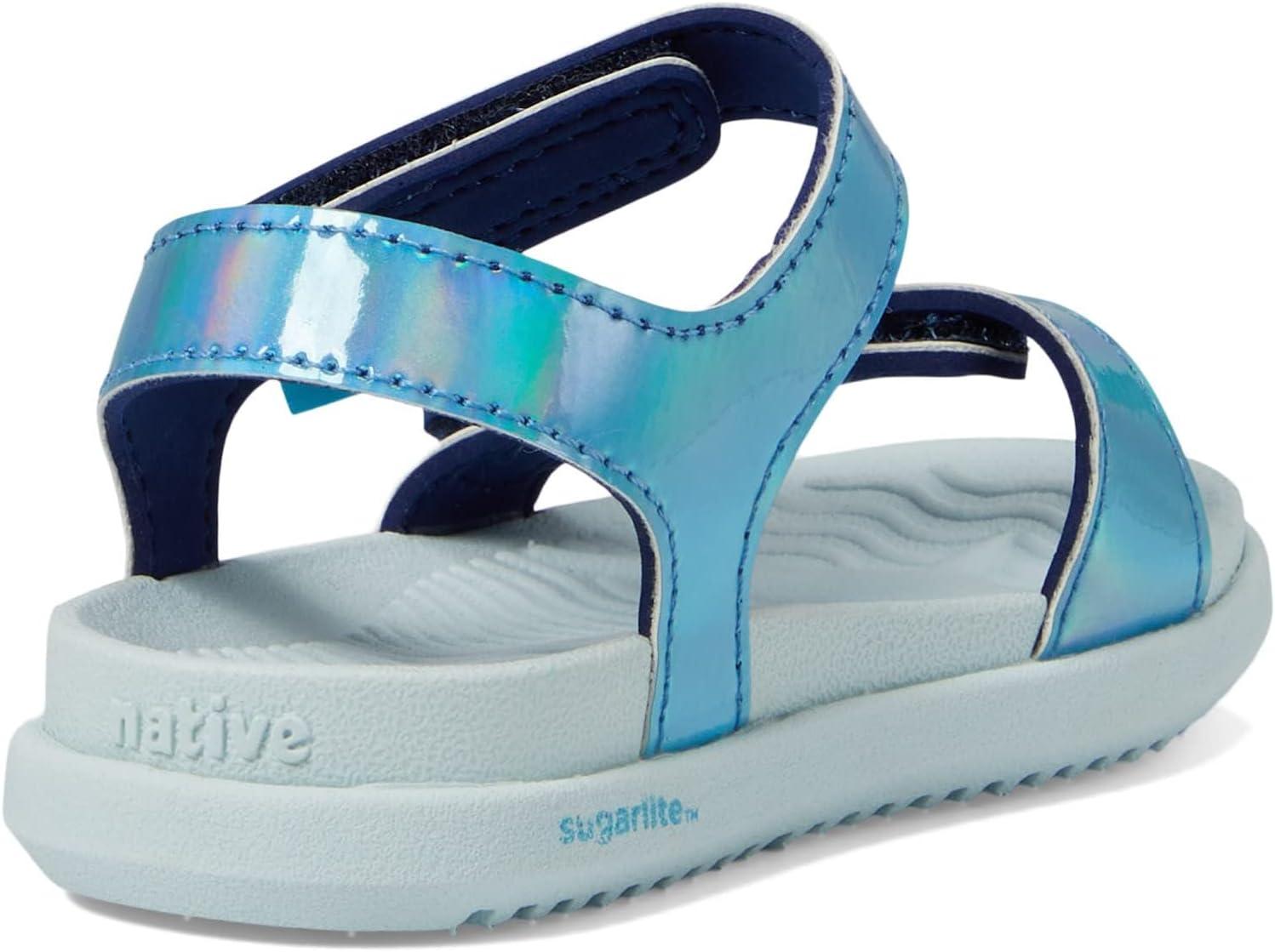 Native Shoes Kids Charley Sugarlite Hologram Flat Sandals for Little Kid – Hook-Loop Closure with EVA Footbed, and Open Toe Design(Sky Hologram/Coastal Blue/Coastal Blue)