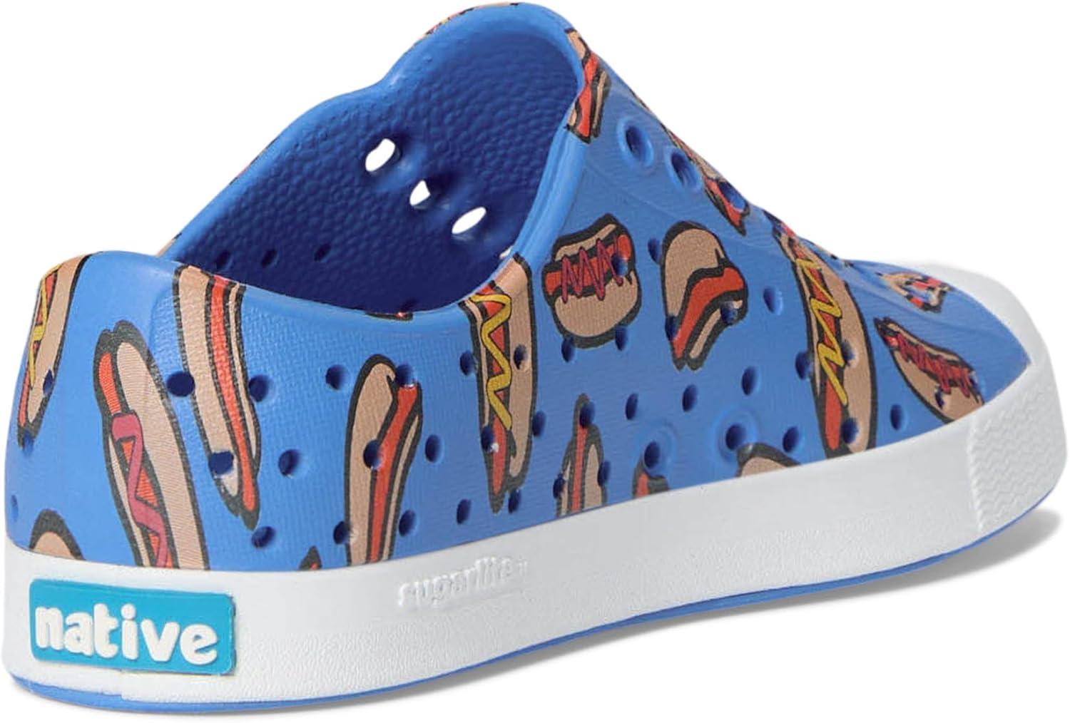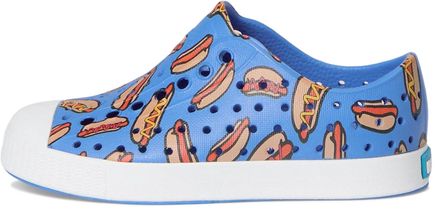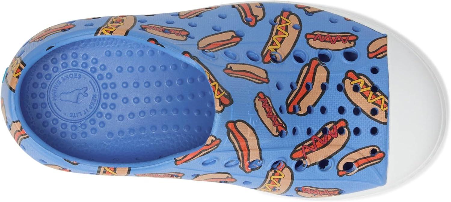 Native Shoes Unisex-Child Jefferson Print (Little Kid/Big Kid)(Resting Blue/Shell White/Hot Dogs)