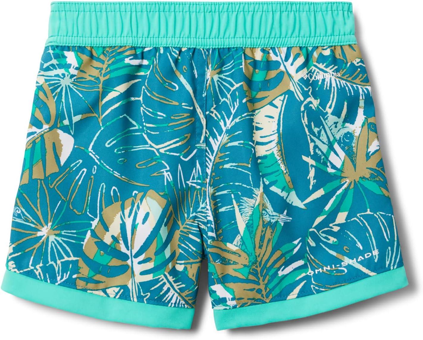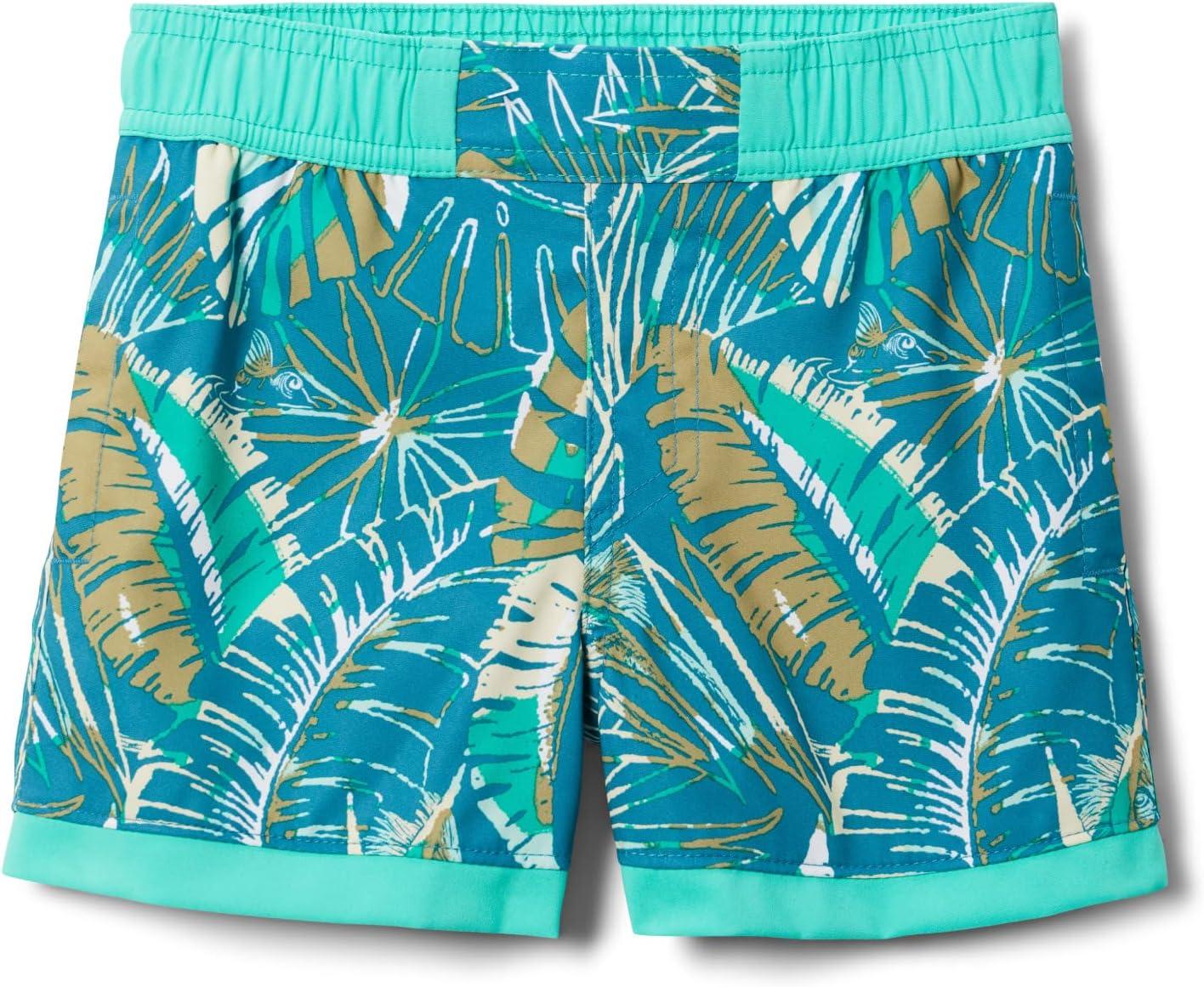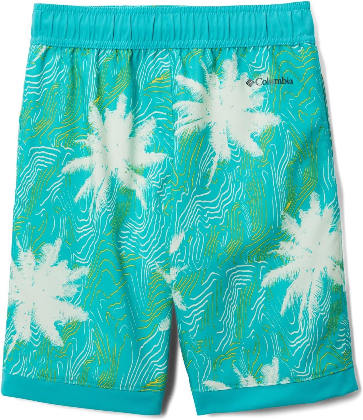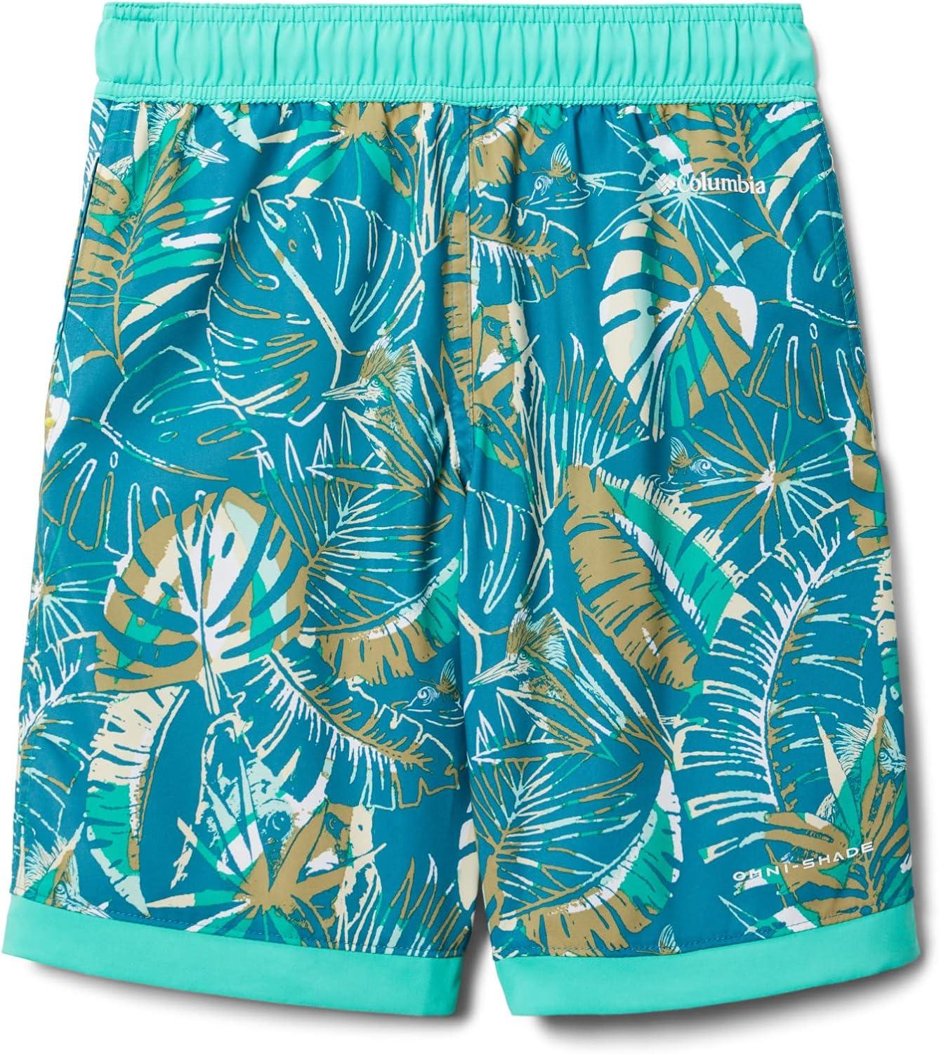 Columbia Boys Sandy Shores Boardshort, Moisture-Wicking, UV Sun Protection(Bright Aqua Topo Palms/Bright Aqua)