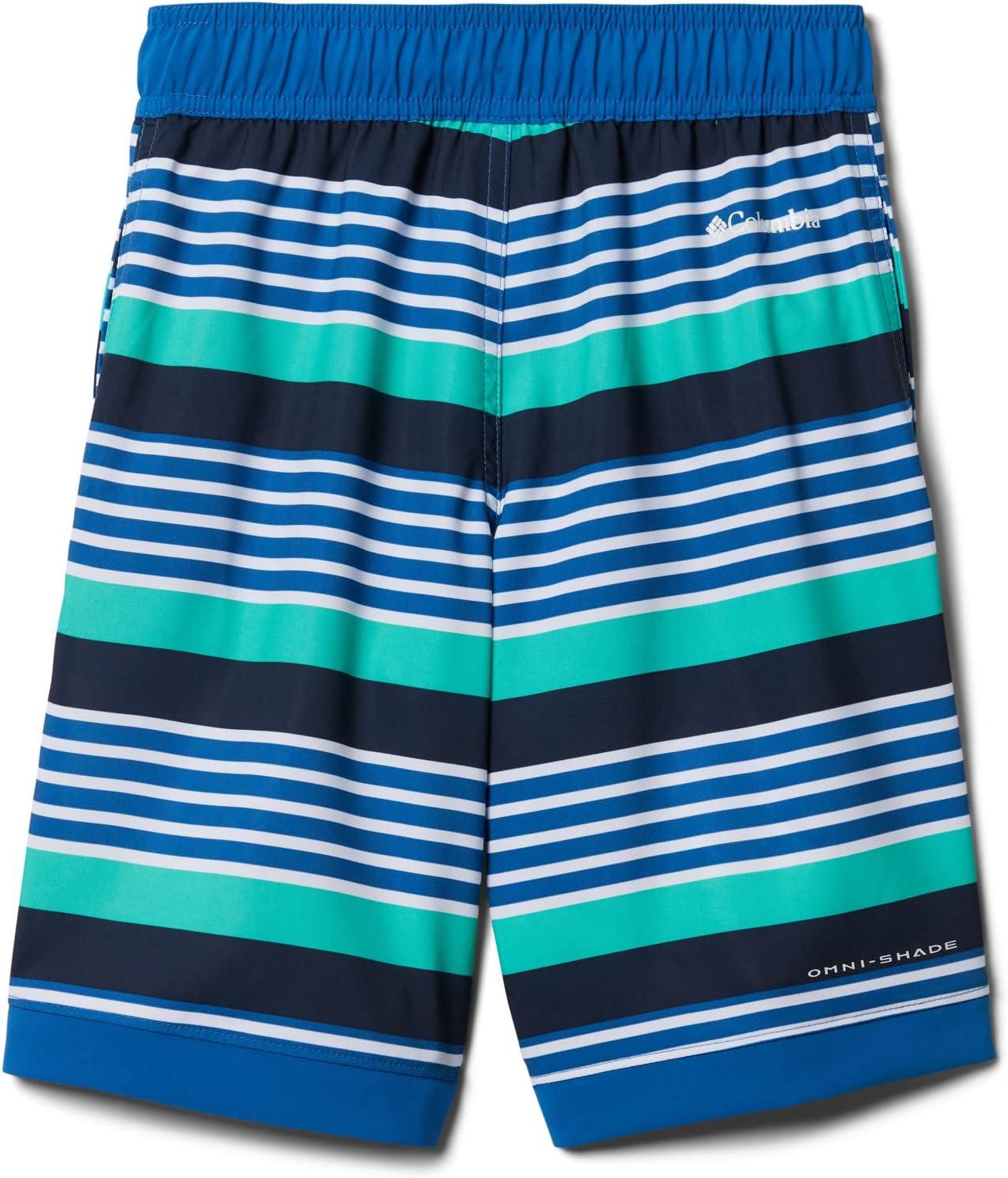 Columbia Boys Sandy Shores Boardshort, Moisture-Wicking, UV Sun Protection(Bright Aqua Danby Stripe/Compass Blue)