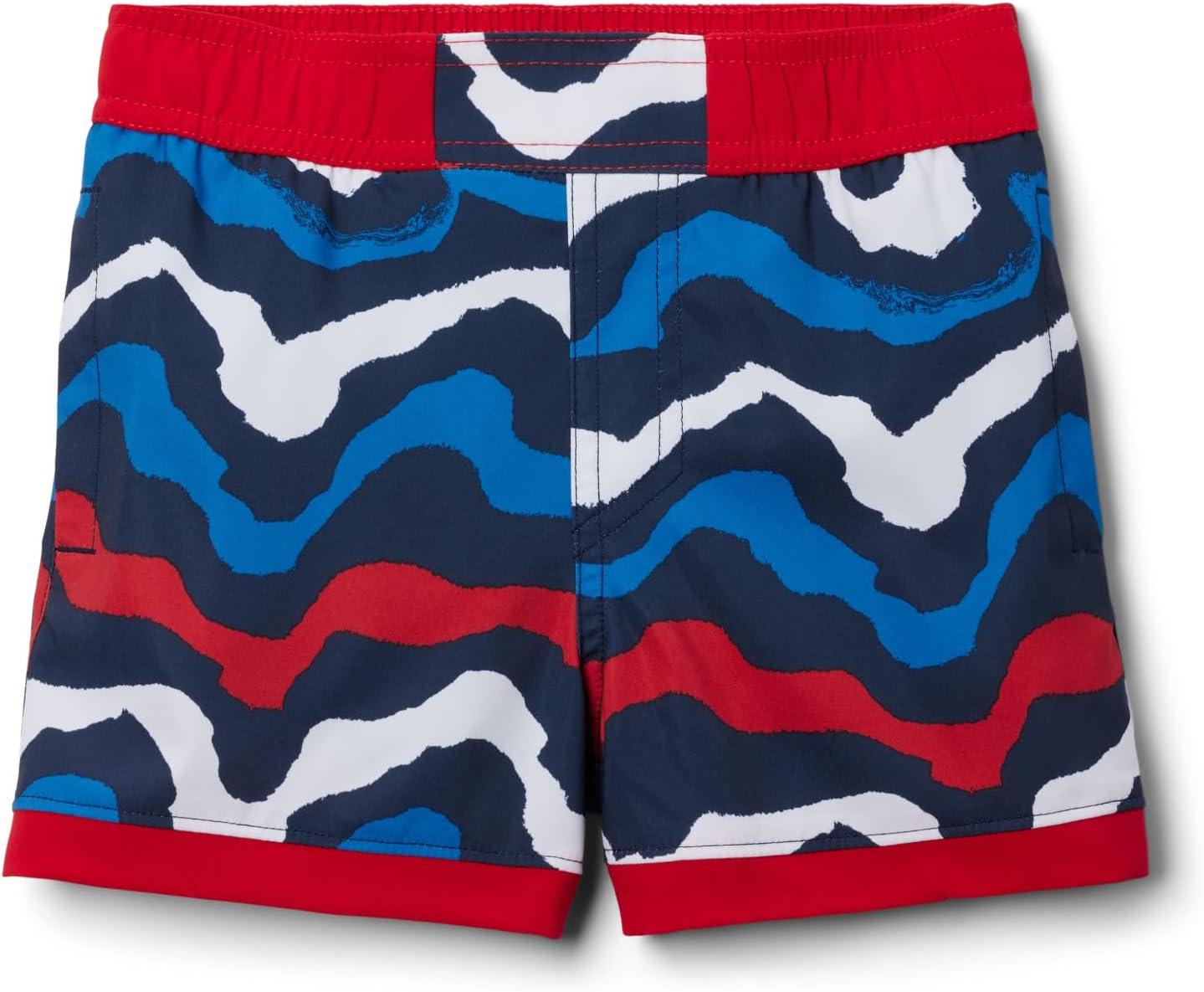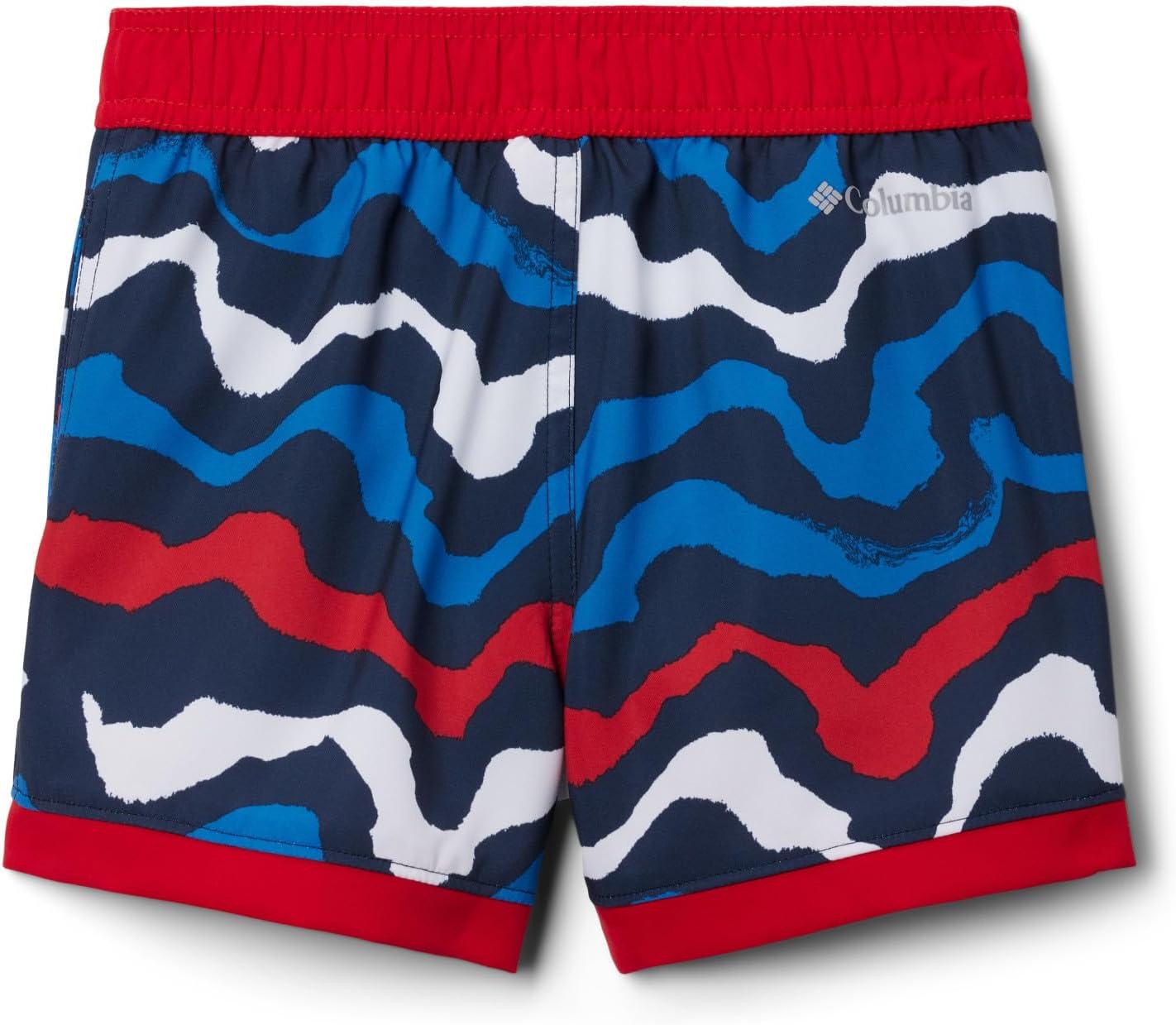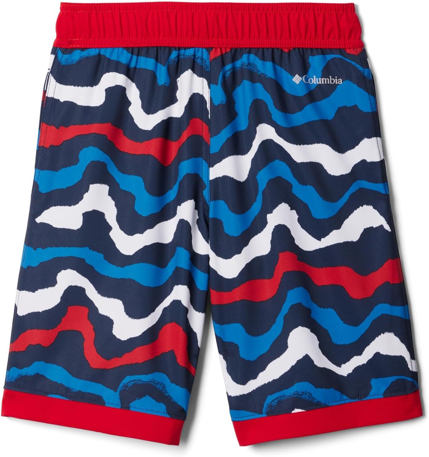 Columbia Boys Sandy Shores Boardshort, Moisture-Wicking, UV Sun Protection(Coll Navy Wavy/Mountain Red)