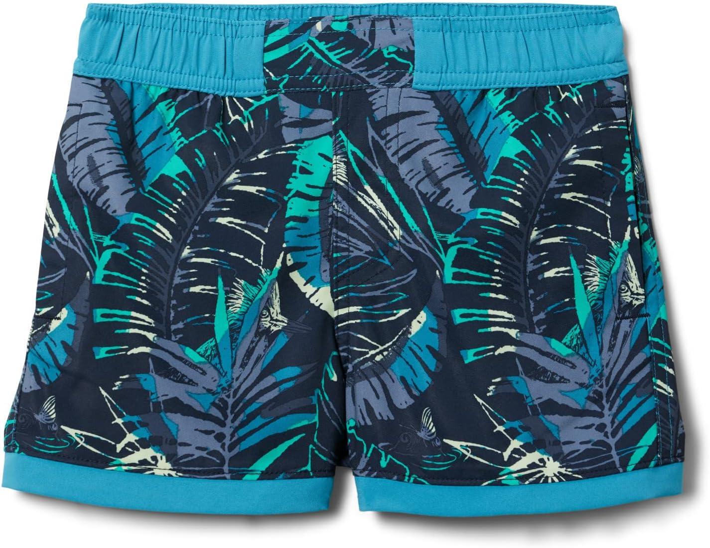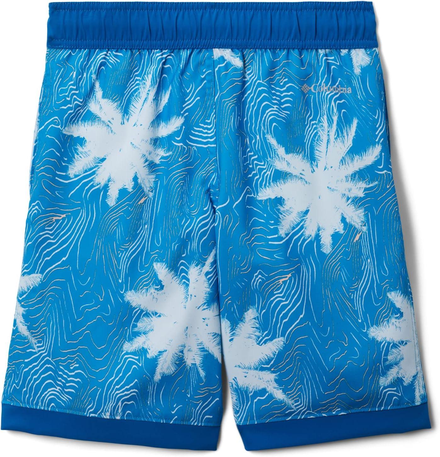 Columbia Boys Sandy Shores Boardshort, Moisture-Wicking, UV Sun Protection(Compass Blue Topo Palms/Bright Indigo)