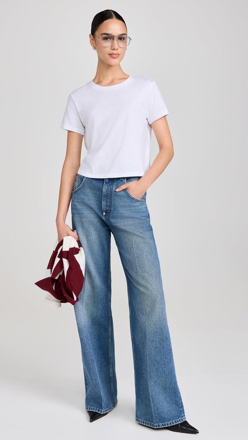 Madewell Women’s Slub Boxy-Crop Tee(Eyelet White)