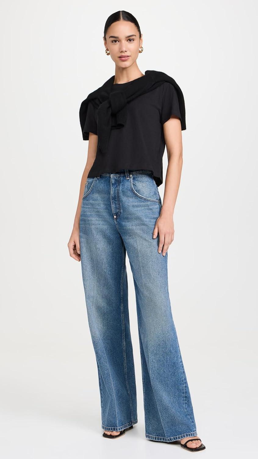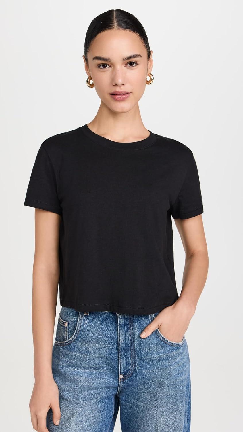 Madewell Women’s Slub Boxy-Crop Tee(Jet Black)