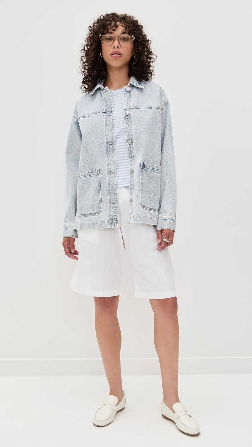 Madewell Women’s Slub Boxy-Crop Tee(White/Light Pool Stripe)