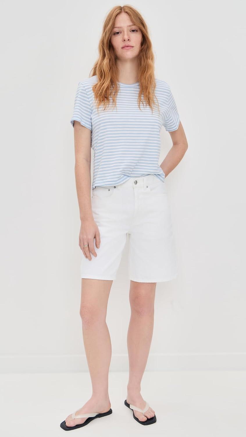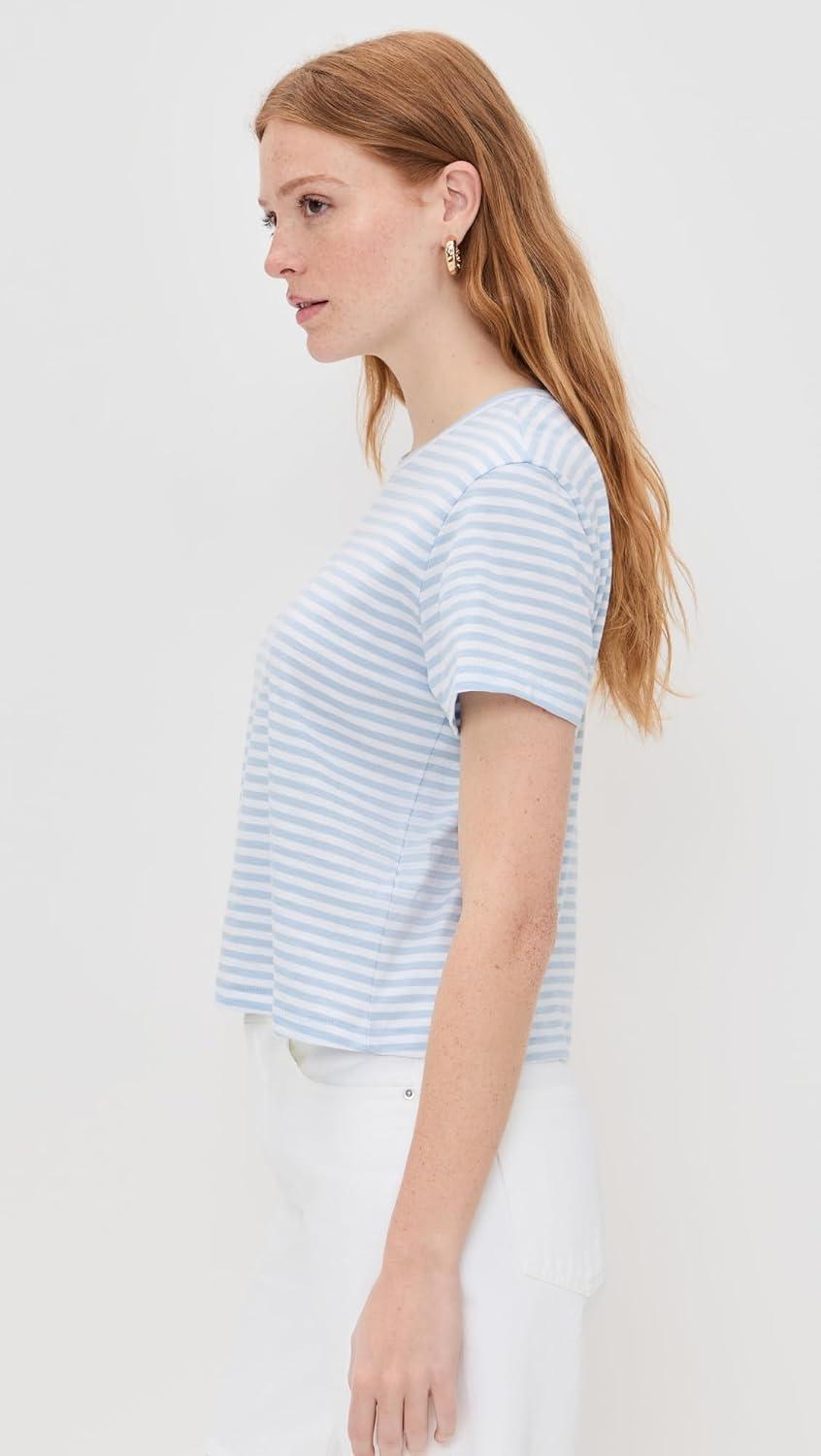 Madewell Women’s Slub Boxy-Crop Tee(Warhol Stripe Iced Blue)