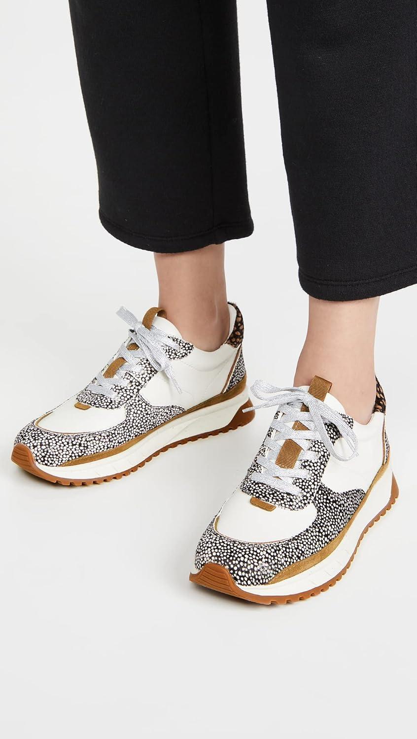 Madewell Women’s Kickoff Trainer Sneakers in Neutral Colorblock Leather(Olive Grove Multi Spot Dot)