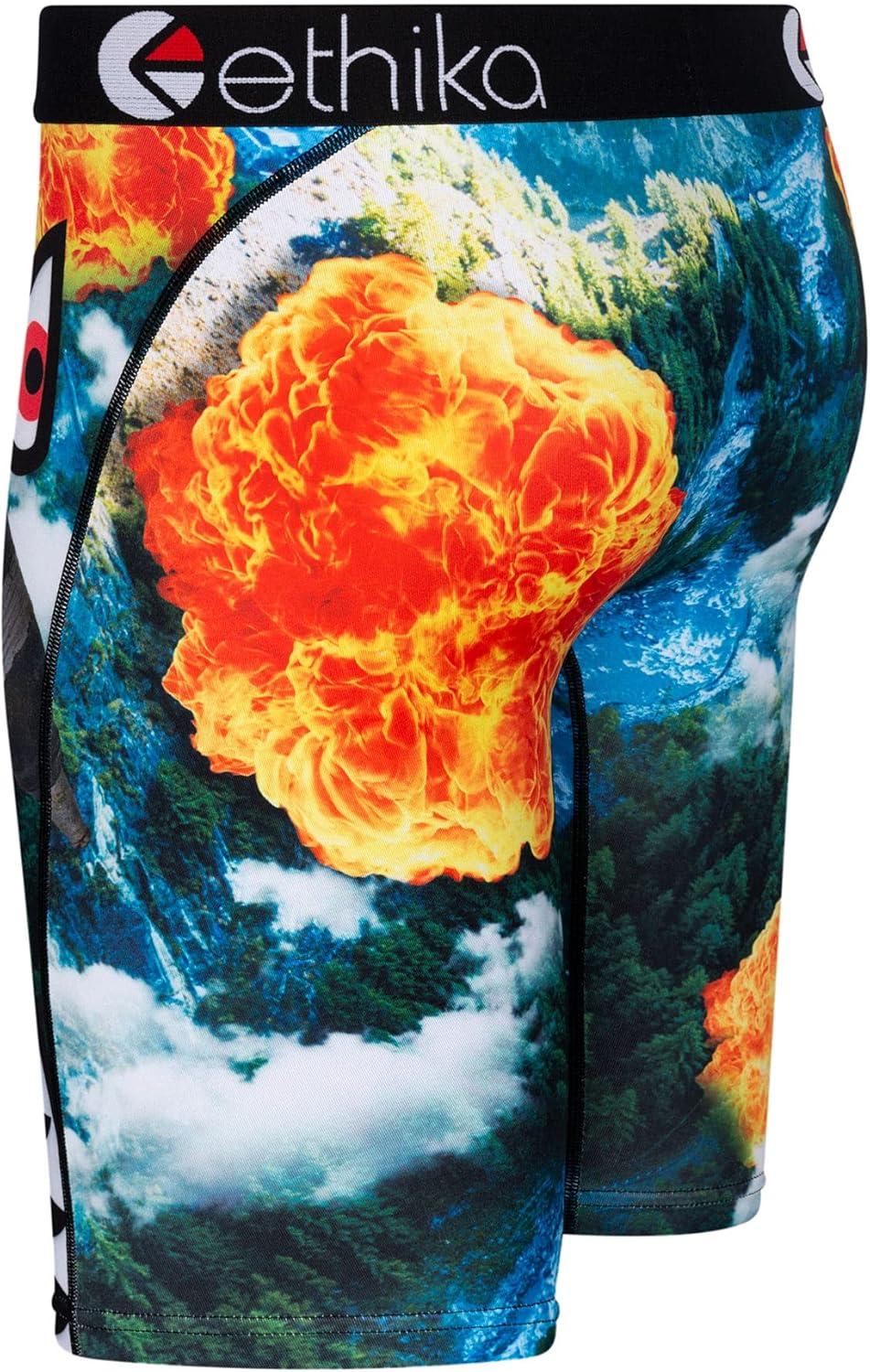 Ethika Men’s Boxer Brief, Knee Length, 4-Way Stretch Performance Underwear with Graphic Prints – BMR 3D(Bmr Bombs Away)