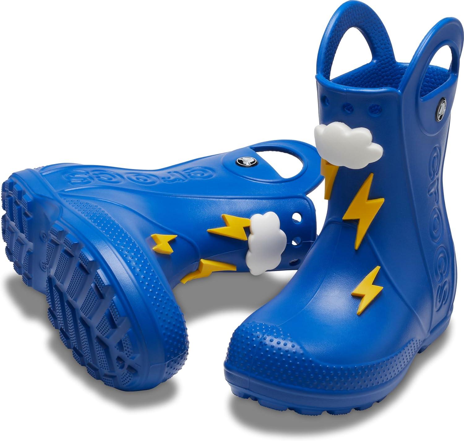 Crocs unisex-child Handle It Rain Boots (Toddler/Little Kid)(Blue Bolt)