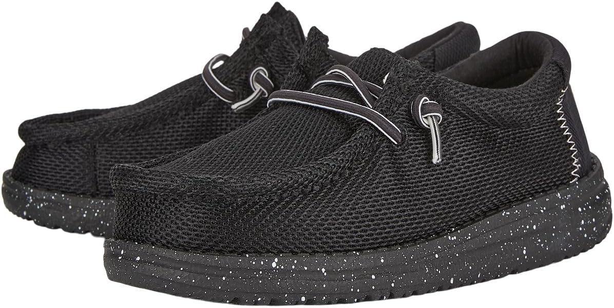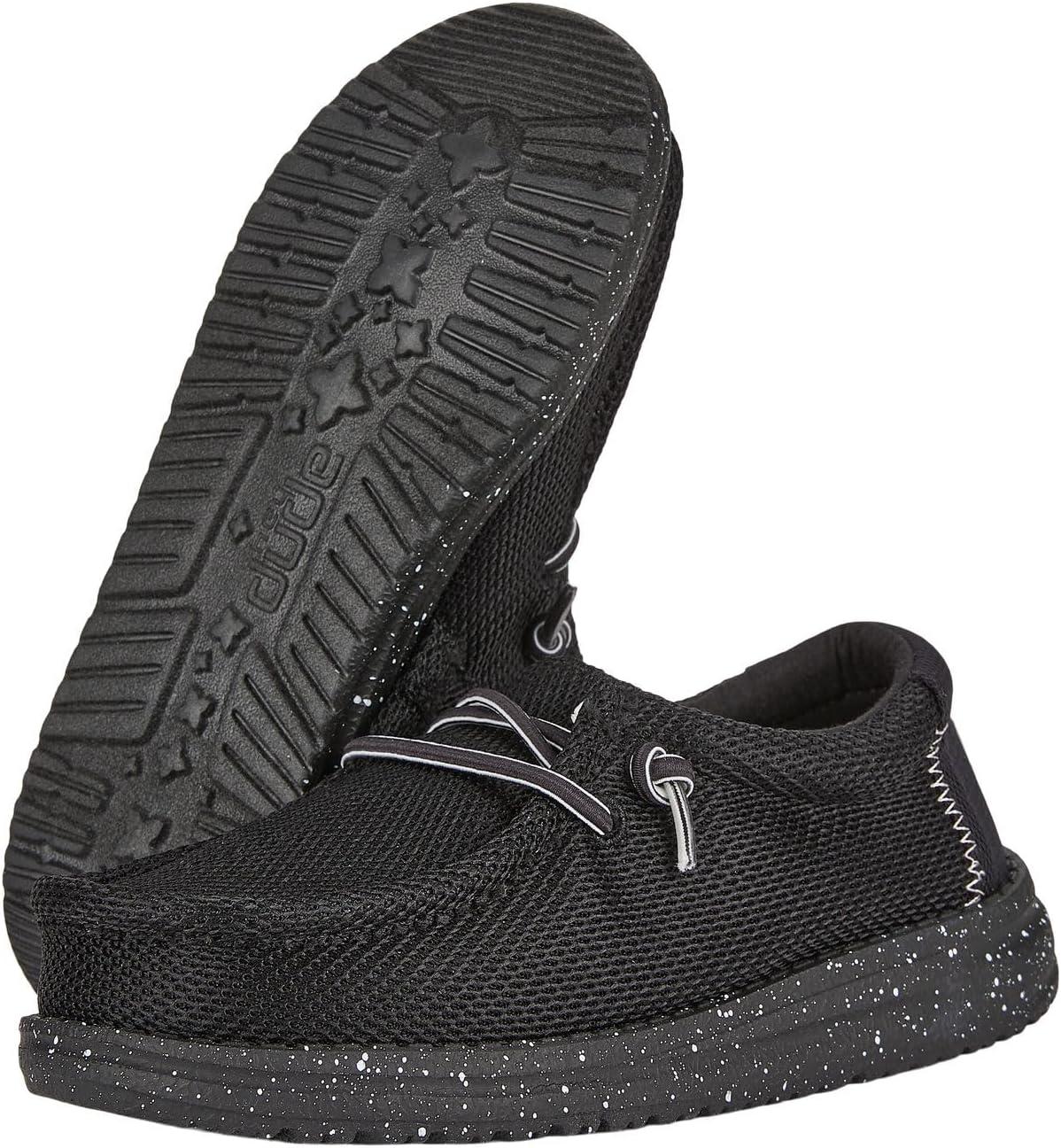 Hey Dude Boy’s Wally Heathered Mesh | Youth’s Shoes | Youth Slip-on Loafers | Comfortable & Light-Weight(Black)