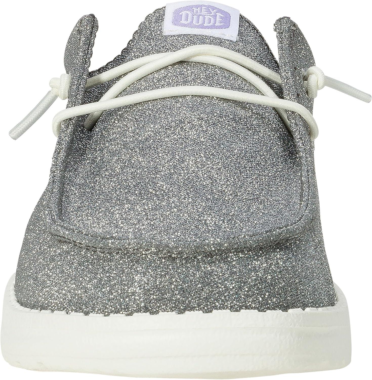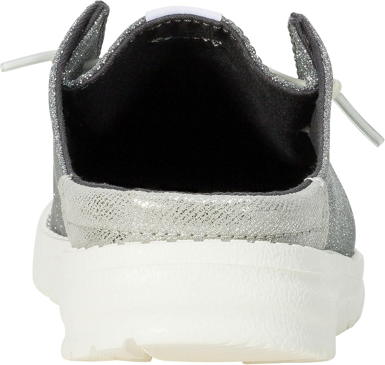Hey Dude Women’s Wendy Bow Shimmer Loafer(Metallic Silver)