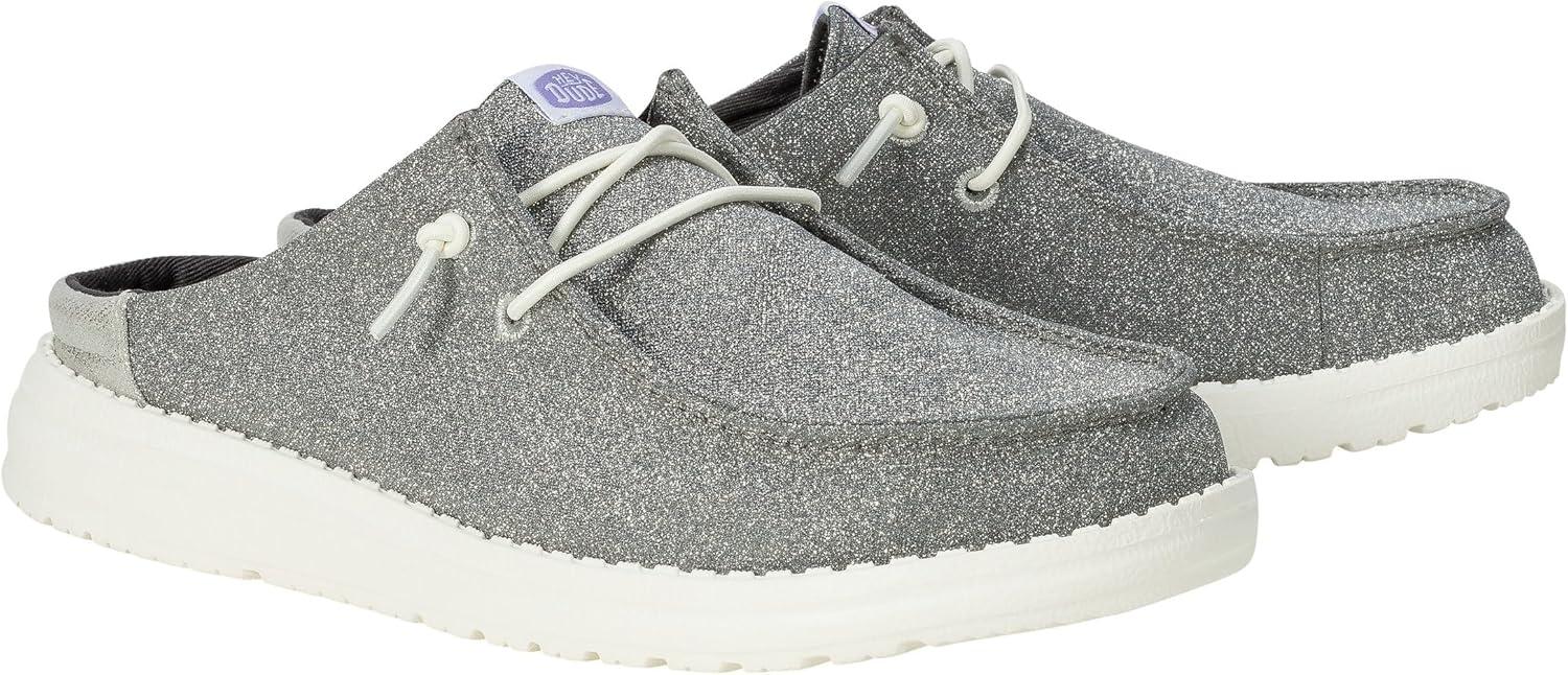 HEYDUDE Women’s Wendy Slip Mule | Lightweight Women’s Slip-On Shoes | Comfortable & Casual Everyday Footwear(Metallic Sparkle/Charcoal)