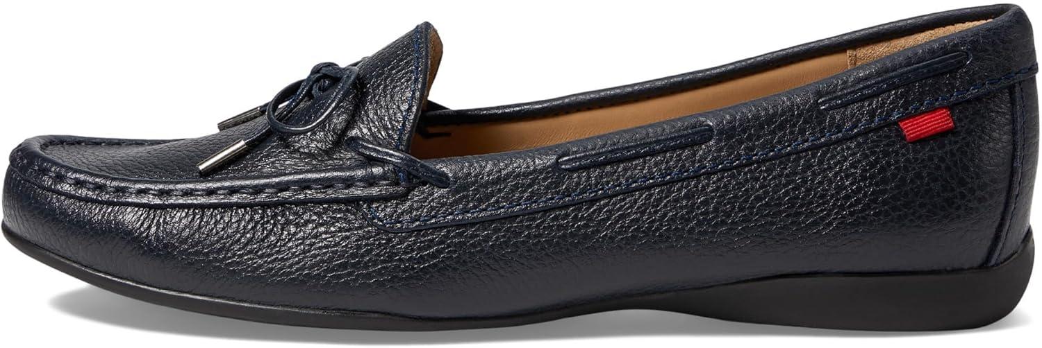 Womens Genuine Leather Comfort Slip on Penny Loafers(Navy Grainy)