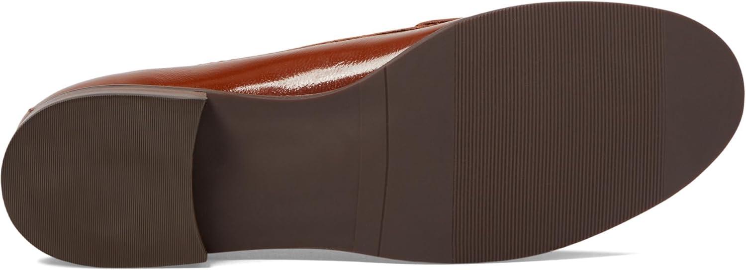 Womens Genuine Leather Comfort Slip on Penny Loafers(Cognac Stained Patent)