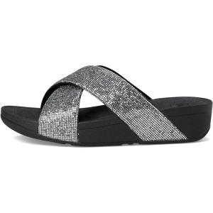 FitFlop Women’s Lulu Glitterball Cross Slides Wedge Sandal(Silver)