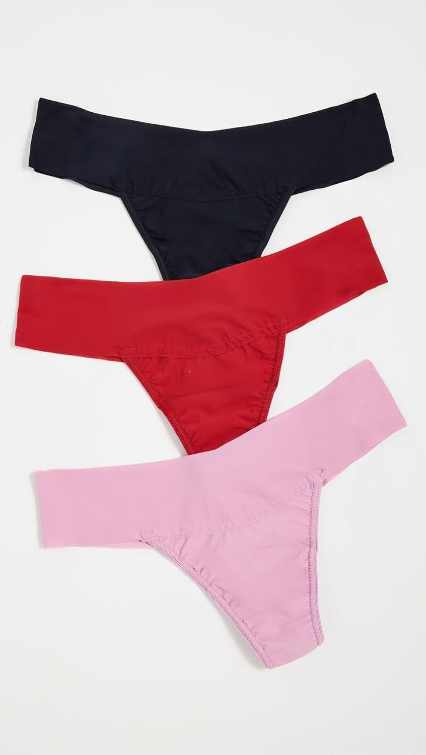 hanky panky – BreatheSoft Natural Rise Thongs for Women | Comfortable Everyday Lingerie Panties | Sizes (XS-XL) | 3 pack(Black/Crimson/Provence Pink)