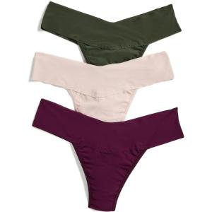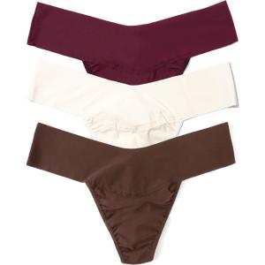 hanky panky – BreatheSoft Natural Rise Thongs for Women | Comfortable Everyday Lingerie Panties | Sizes (XS-XL) | 3 pack(Dried Cherry Linen (White) Mahogany)