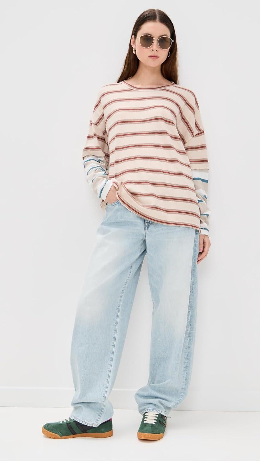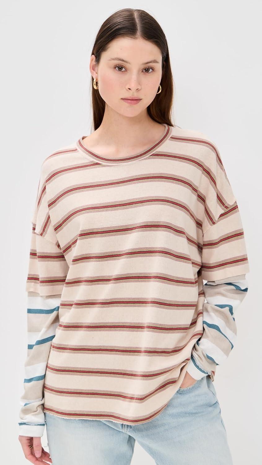 Free People Womens Nina Stripe Long Sleeve(Neutral Combo)