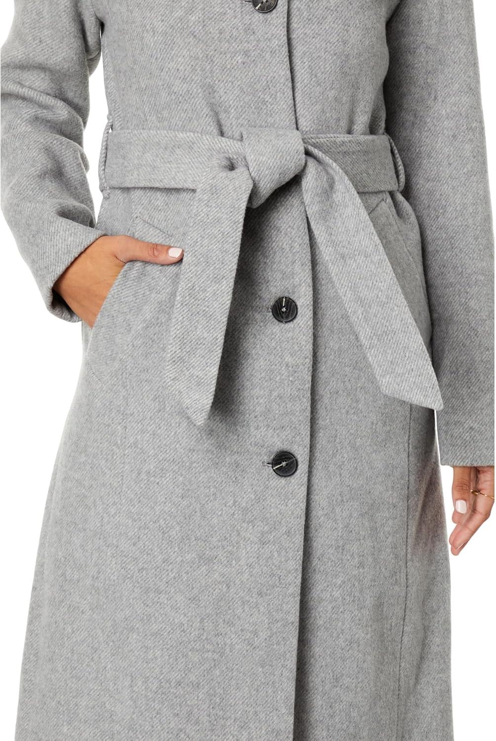 Wool Blend Coat with Overlapping Collar by Avec Les Filles(Grey)