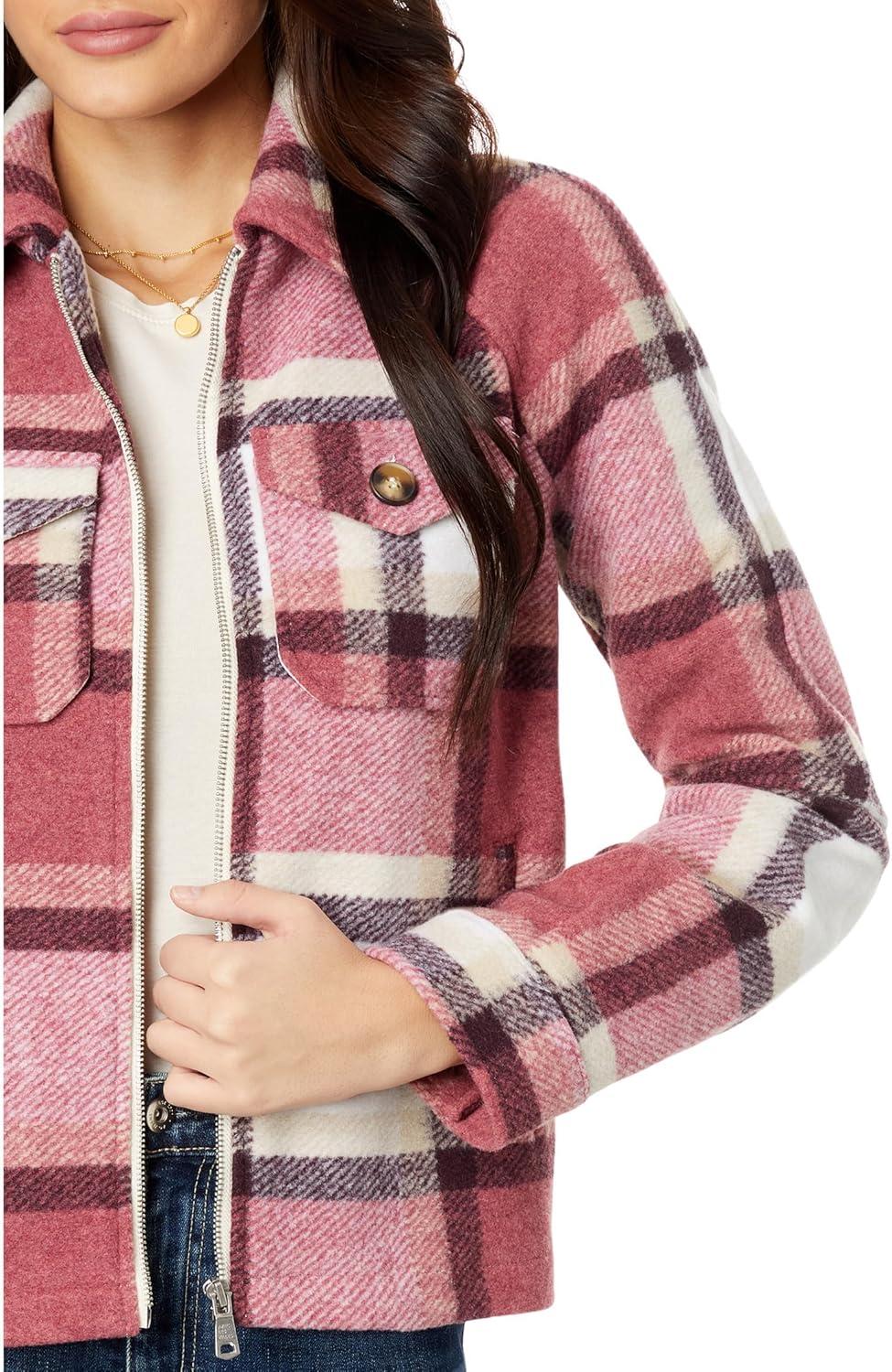 Zip-Front Printed Jacket by Avec Les Filles(Cranberry/Cream Plaid)