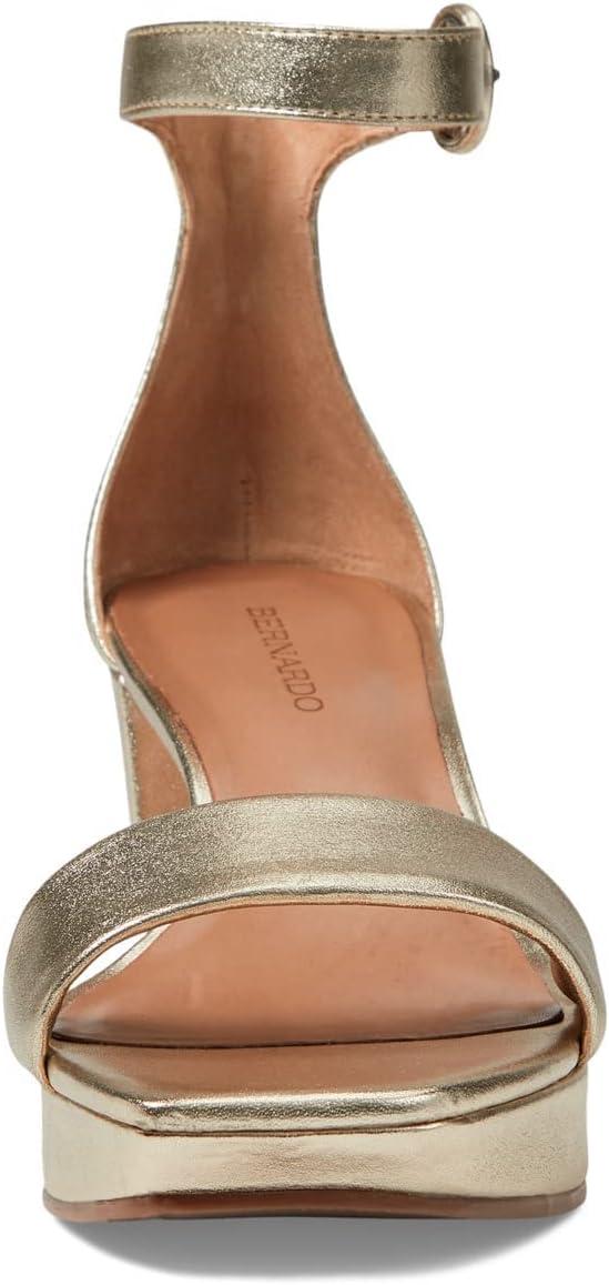 Bernardo® Carla Strap Heels for Women – Leather Upper and Lining – Rubber Sole – Block Heels(Champagne)