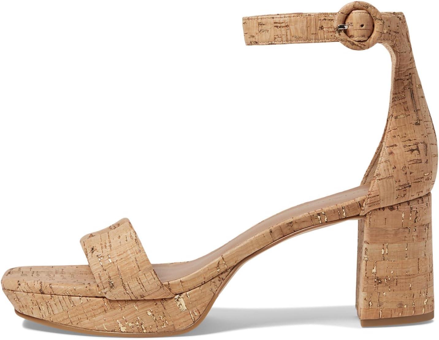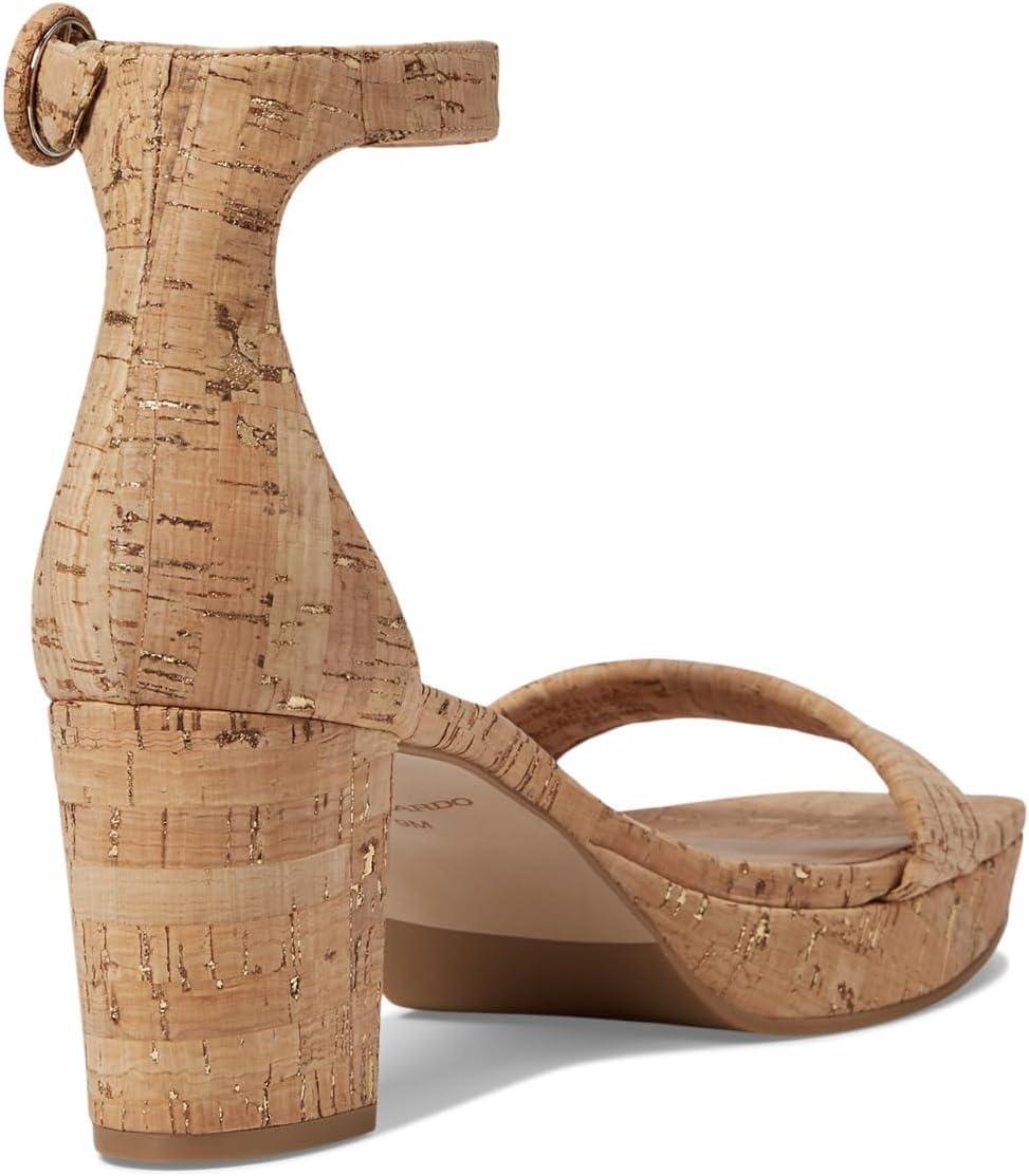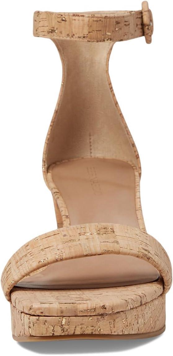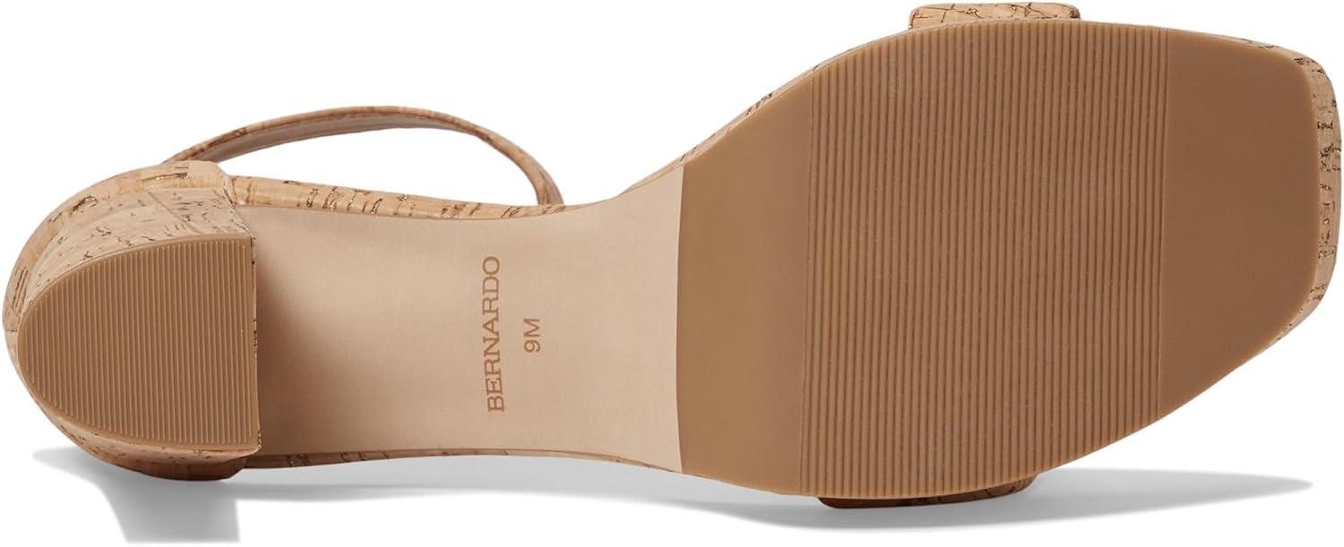 Bernardo® Carla Strap Heels for Women – Leather Upper and Lining – Rubber Sole – Block Heels(Cork/Gold Fleck)