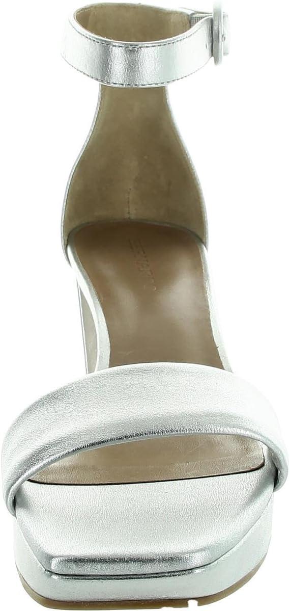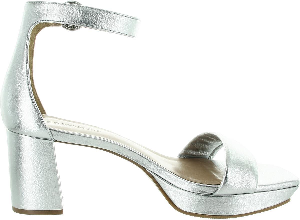 Bernardo® Carla Strap Heels for Women – Leather Upper and Lining – Rubber Sole – Block Heels(Silver)