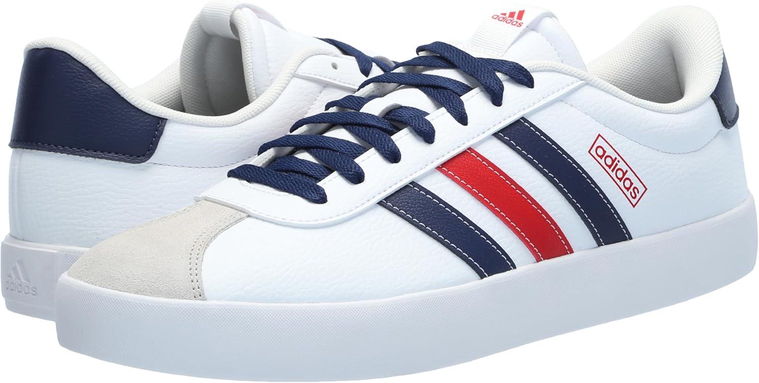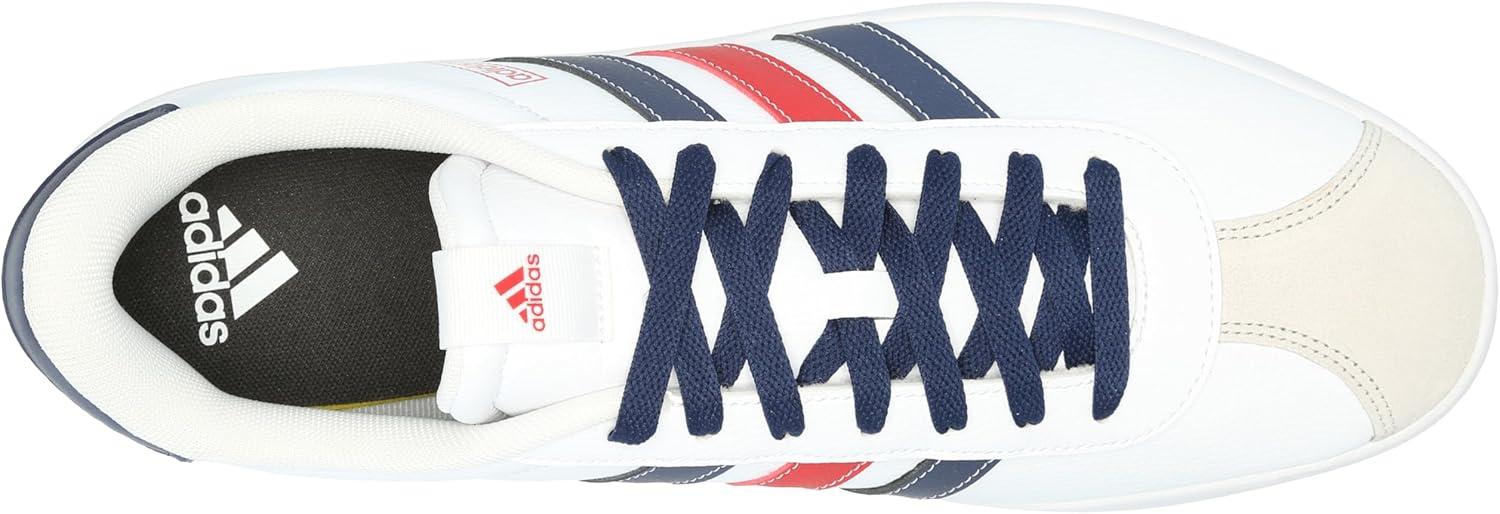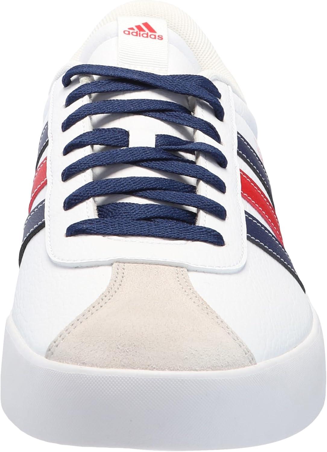 adidas Men’s VL Court 3.0 Shoe(White/Team Navy Blue/Better Scarlet)